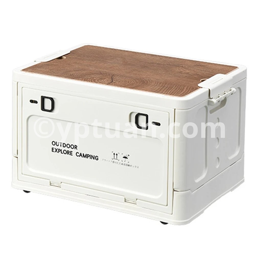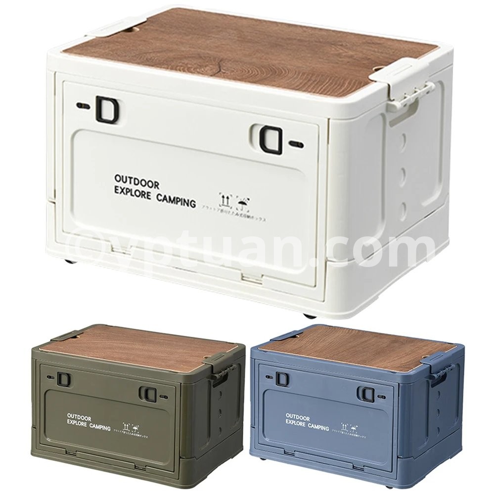 30L Collapsible Storage Bin with Wooden Lid Portable Storage Container Large Capacity Side Open Home Outdoor Store Camping Items