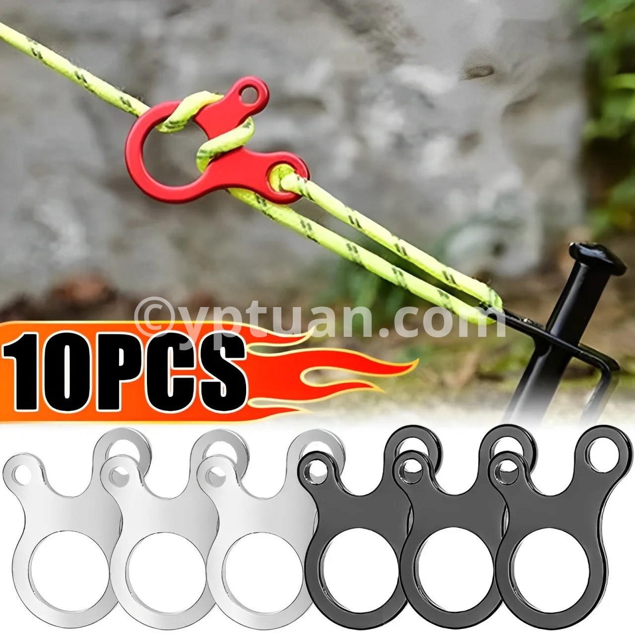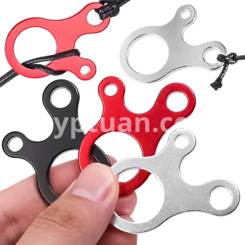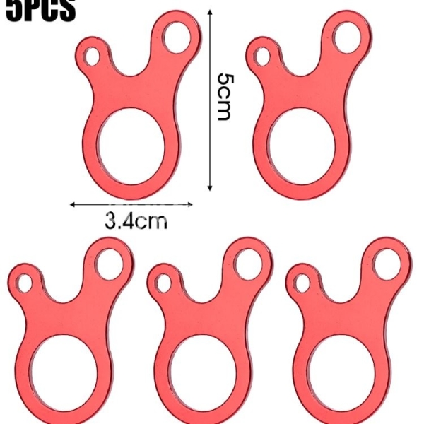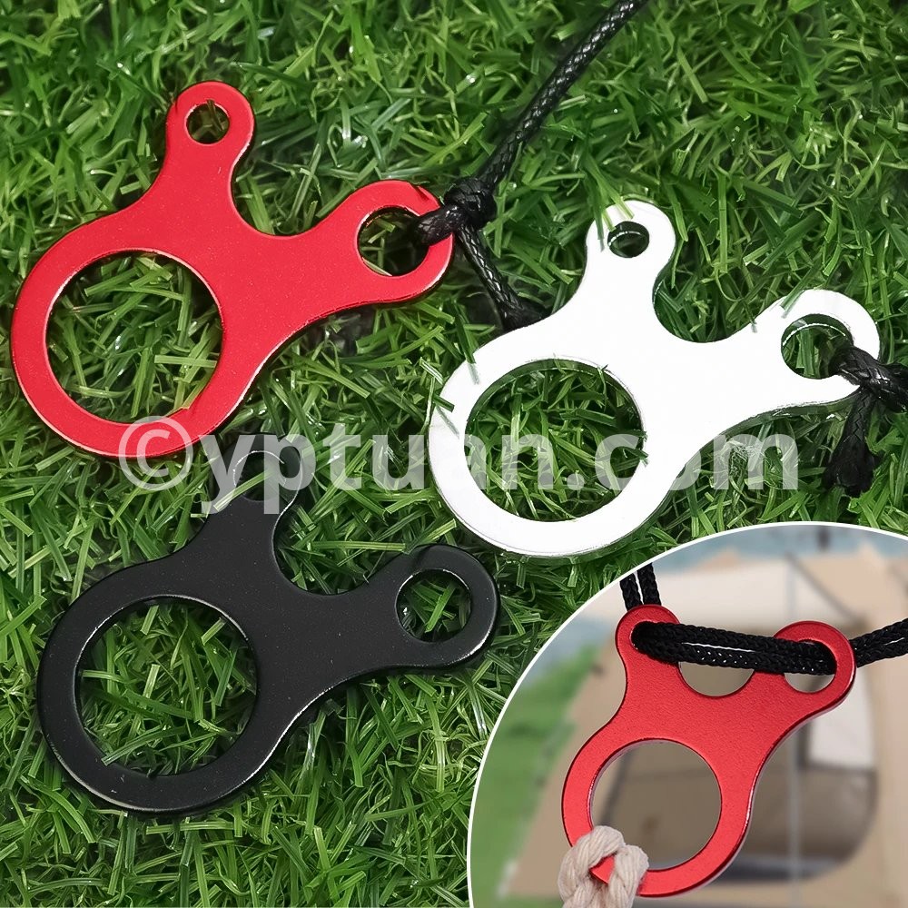 Specification: 1. Material: Aluminum alloy 2. Size: 5 * 3.4 * 0.2cm 3. Package includes: 5/10 * windproof rope buckles