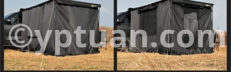 feature Lightweight Portable Folding Storage The sun room is made of 420D Oxford cloth and gauze fabric. The Oxford fabric itself has waterproof performance, and the gauze mesh is not waterproof. 420D Oxford cloth four corners multi-layer reinforcement waterproof/tear resistance