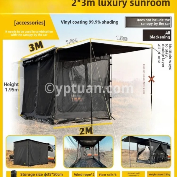 OutdoorsCarSideTentSunshadeBlackSunProtectionPortableCollapsi
