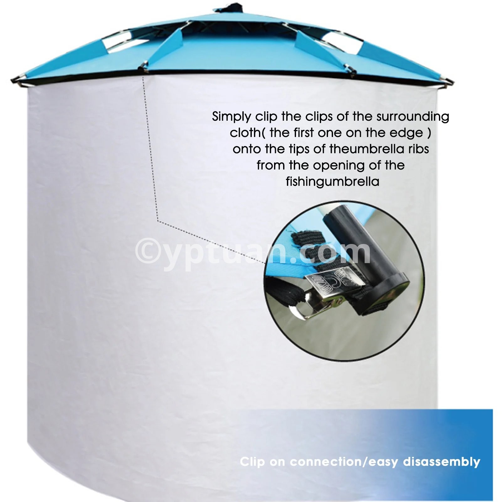 Features: Versatile Fishing Companion: This umbrella shelter is specifically designed for fishing, providing you with a comfortable and convenient shelter to enjoy your fishing experience in any weather condition, be it rain or shine. Enhanced Protection: The double-layer design of this portable canopy umbrella offers superior protection against both the sun's harmful rays and unexpected rain showers, ensuring you stay dry and shielded from uv radiation. Easy Setup and Stability: Equipped with sturdy clips, this fishing umbrella shelter can be effortlessly set up in seconds, providing a stable and secure shelter for your fishing adventures. It's also suitable for camping, beach trips, and other outdoor activities. Adjustable Sun Shade: The removable cloth surrounding the umbrella allows you to customize the amount of shade you desire, ensuring you stay comfortable and protected from the scorching sun during long fishing sessions or sports events. Durable and Portable: Crafted with high-quality materials, this outdoor fishing canopy umbrella is built to withstand the rigors of outdoor use. Its compact and lightweight design makes it easy to carry and store, making it an ideal companion for all your fishing escapades. Specification: Material: Cloth Size: 4.6*1.65m Notes: 1. The real color of the item may be slightly different from the pictures shown on website caused by many factors such as brightness of your monitor and light brightness. 2. Please allow slight manual measurement deviation for the data. Package Includes: 1*Umbrella Shelter for Fishing