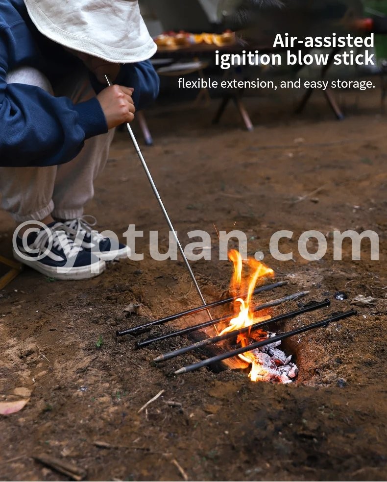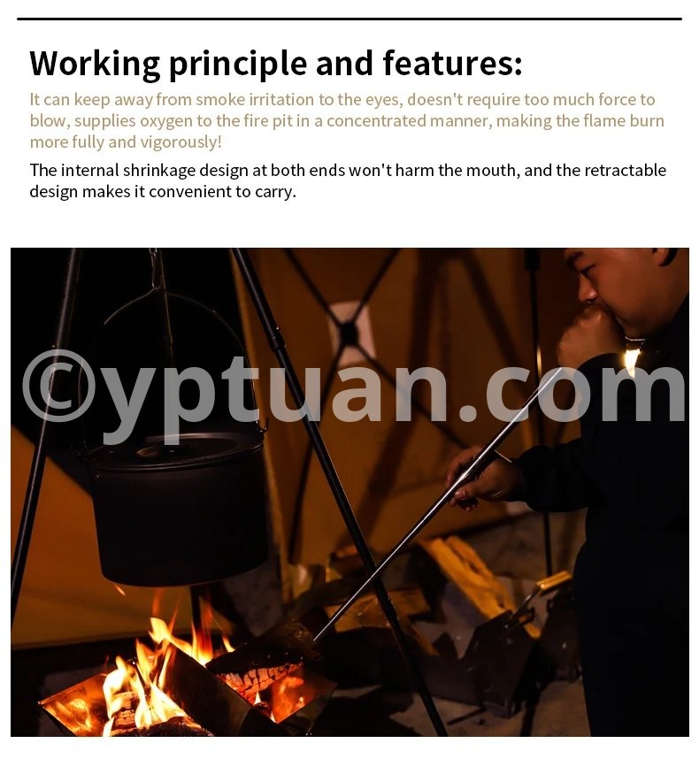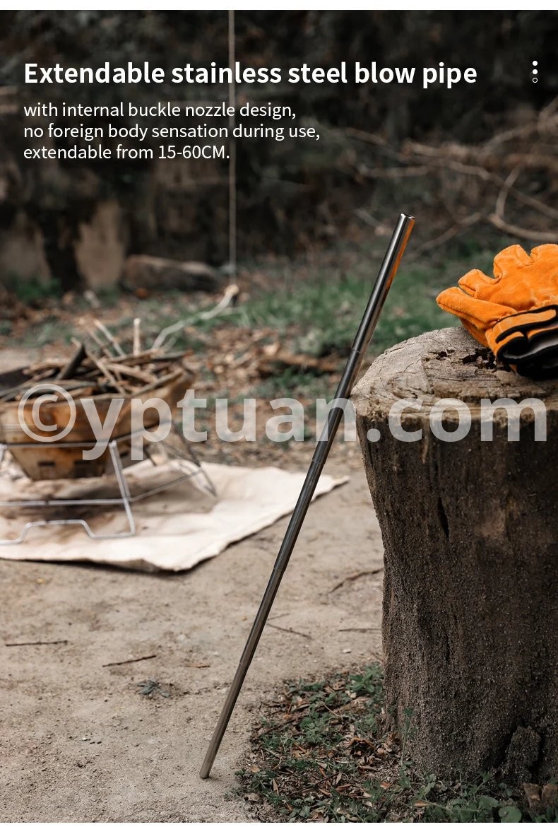 3.The air-assisted ignition blow stick can keep away from smoke irritation to the eyes. It doesn't require too much force to blow, and it can supply oxygen to the fire pit in a concentrated manner, making the flame burn more fully and vigorously! Flexible extension and easy storage.