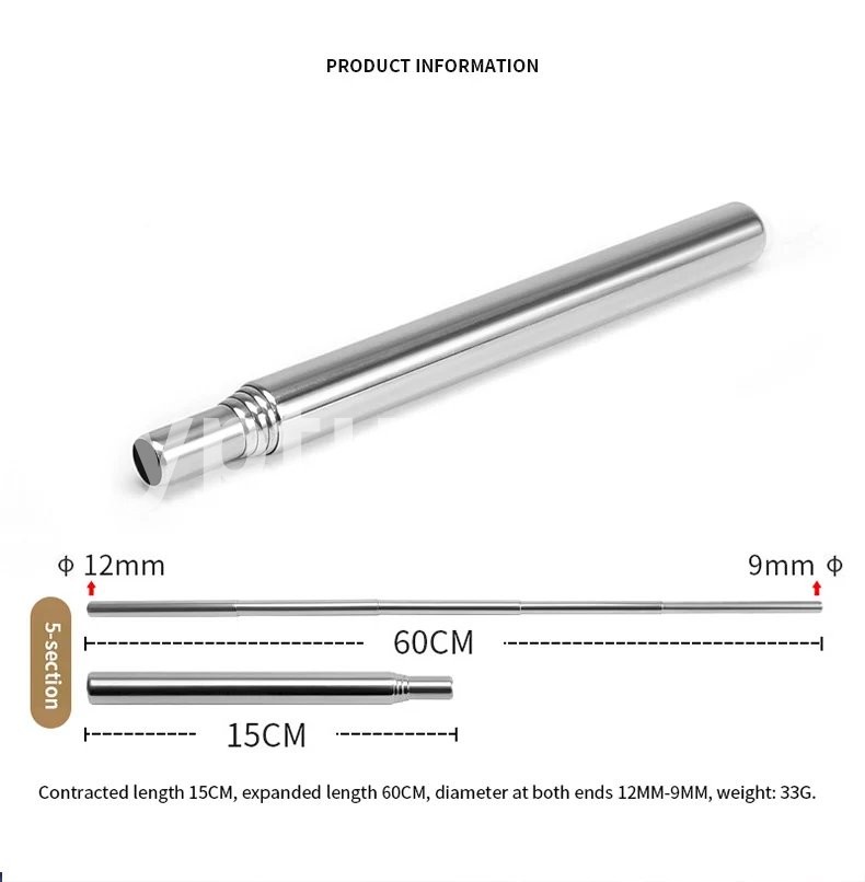 2.Product Size: Contracted length 15CM, expanded length 60CM, diameter at both ends 12MM-9MM