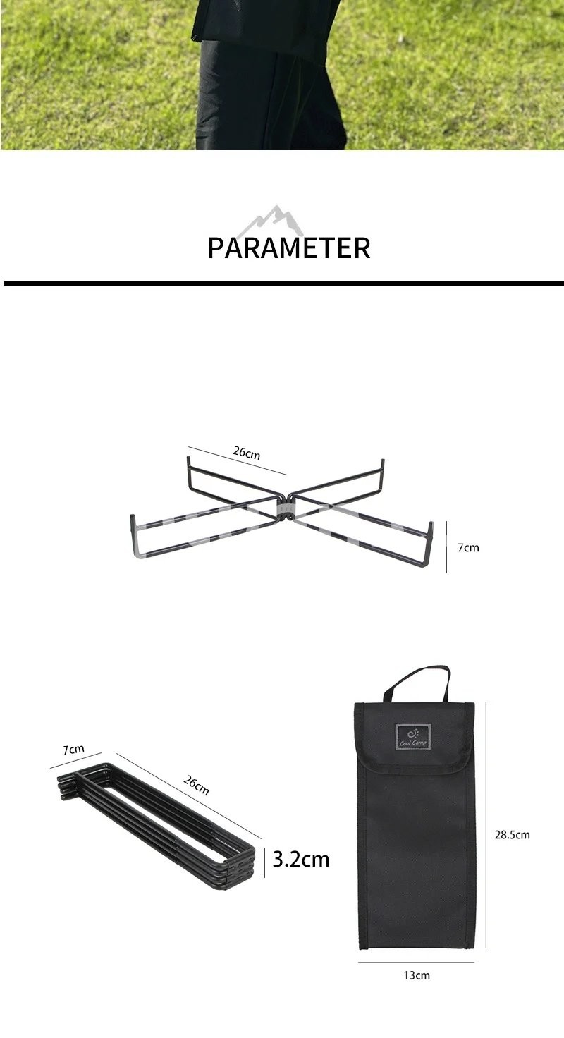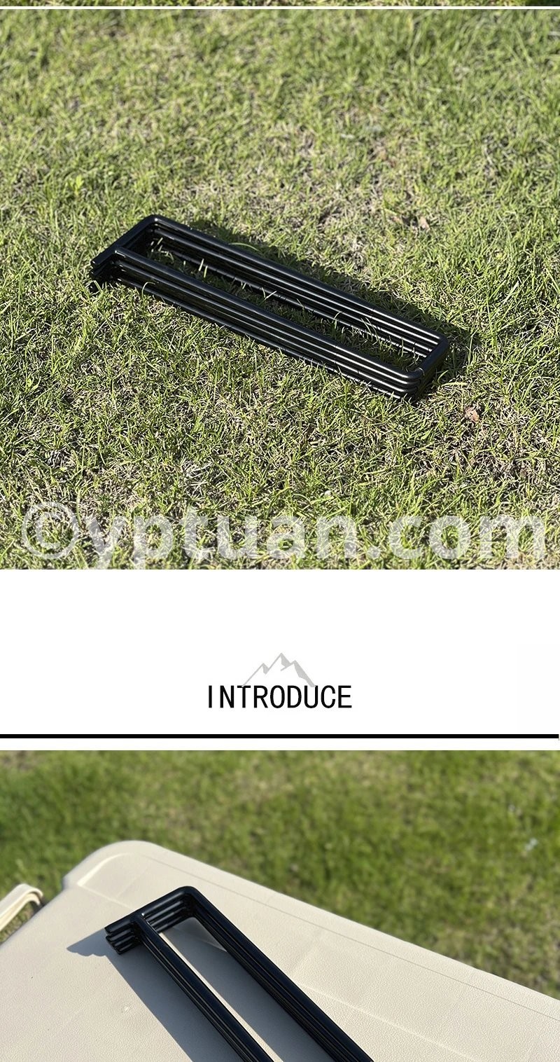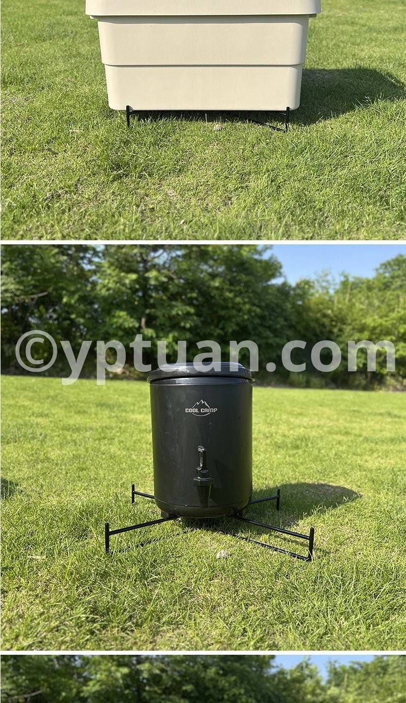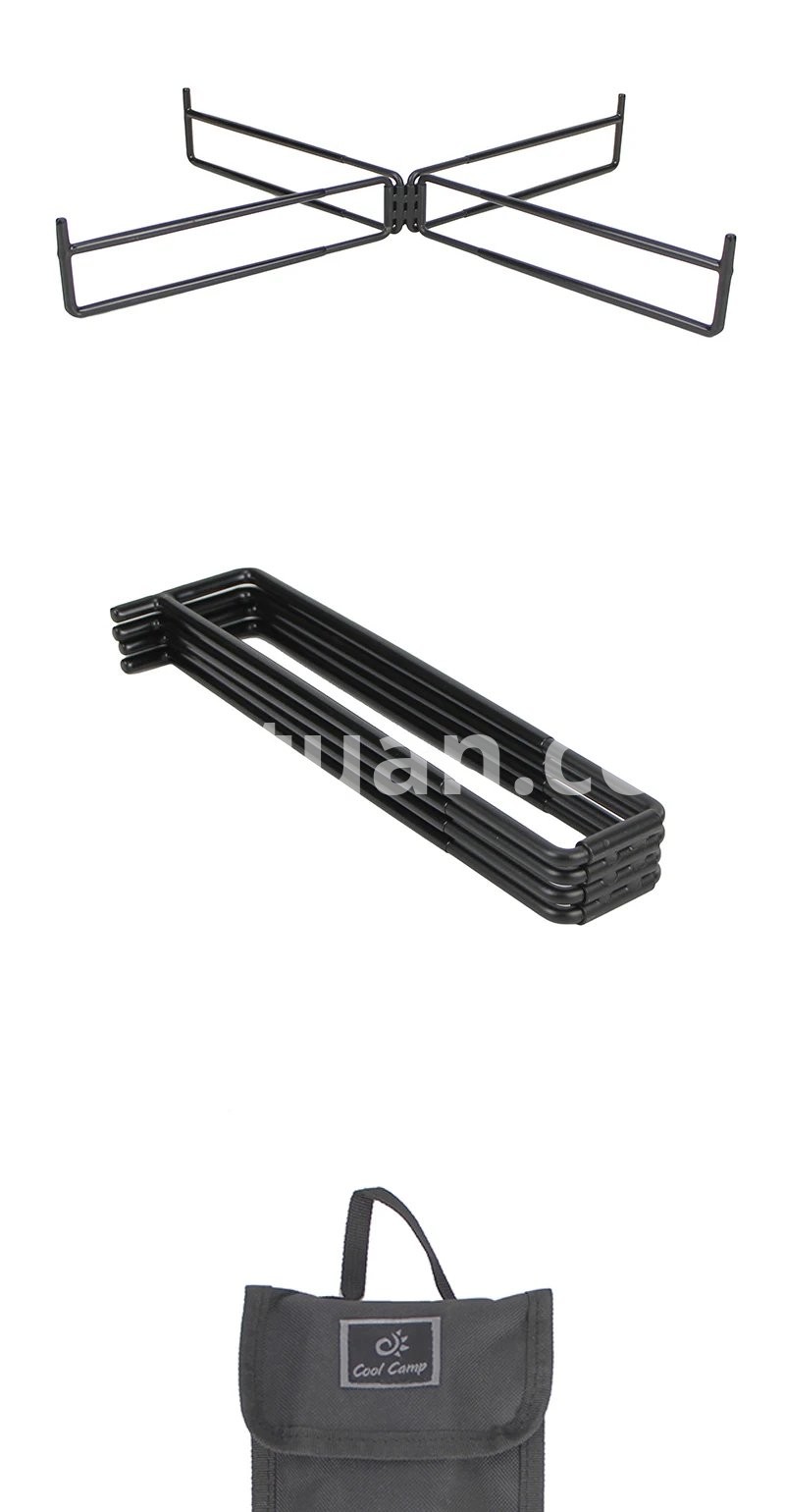 This metal folding storage rack is perfect for outdoor camping, hiking, and travel. It serves multiple purposes such as a box support, water bucket base, and storage box ground pad.