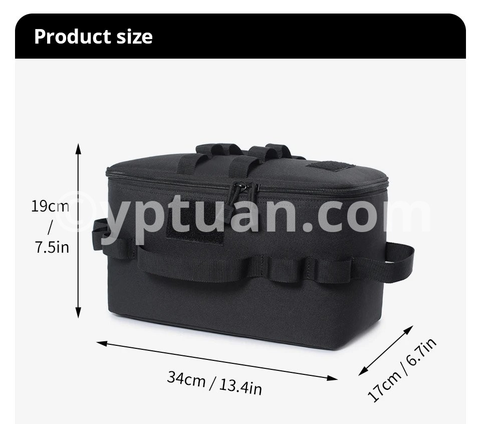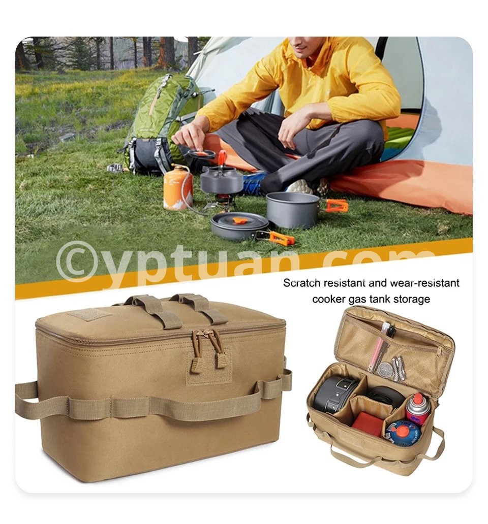 This bag can be used for storing gas canisters, picnic cookware, utensils, and other outdoor tools, making it a versatile addition to your camping gear.