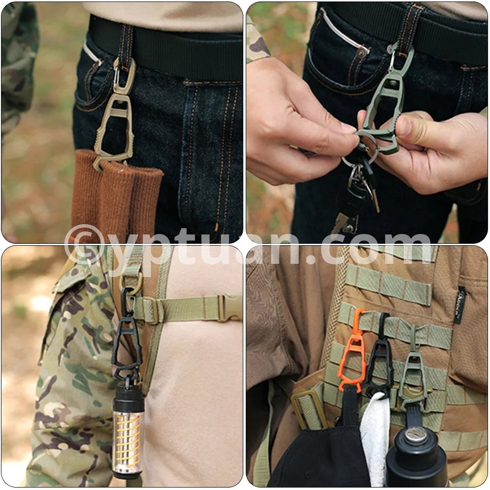 Portable Gloves Hook Multi-purpose Protective Gloves Clips Anti-drop Work Gloves Holder Clip for Worker Construction Features: 1.Quick-Release Mechanism: Each outdoor glove clip features a one-press release design for effortless access to your gloves. Just a simple two-finger press can swiftly secure or release your items, eliminating the hassle of complicated clasps or buttons and ensuring that your work gear is readily accessible when you need it. 2.Z-Shaped Hook: Designed with a unique 'Z' shaped opening, these portable gloves hooks guarantee that your gloves and other items remain securely in place. The specialized structure prevents items from sliding off during movement, offering you peace of mind that your belongings are safely attached even during rigorous activity. 3.Lightweight Material: Constructed from polyoxymethylene, known for its strength and resilience, these gloves safety clips boast a lightweight profile at just 13g, ensuring minimal burden. The sturdy material resists wear and tear, making it suitable for even the most demanding outdoor or work environments. 4.Versatile: Capable of holding more than just gloves, these protective gloves clips are an all-in-one solution for hanging towels, keys, lighting equipment, water bottles, and other essentials. 5.Portable Design: Measuring only 10.5cm x 3.5cm x 1.5cm, the compact size of these work gloves holder clips allows for easy transport and storage. Despite their small footprint, they provide a reliable and secure hold, making them an indispensable tool for labor protection and outdoor activities. Specification: Origin: Mainland China Type: Pocket, Multi Tools Material: Polyformaldehyde Color: Black, Green, Orange, Khaki Size: L10.5cm/4.13in*W3.5cm/1.38in*Th1.5cm/0.59in Net Weight: 13g Features: One Push To Open, Ready To Use, Z-Opening Design Note: Due to the different monitor and light effect, the actual color of the item might be slightly different from the color showed on the pictures. Thank you! Please allow 1-2cm measuring deviation due to manual measurement.