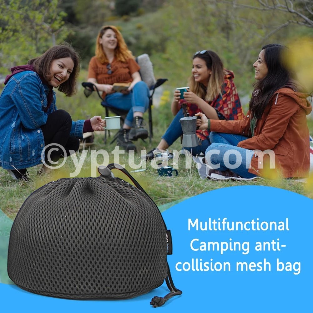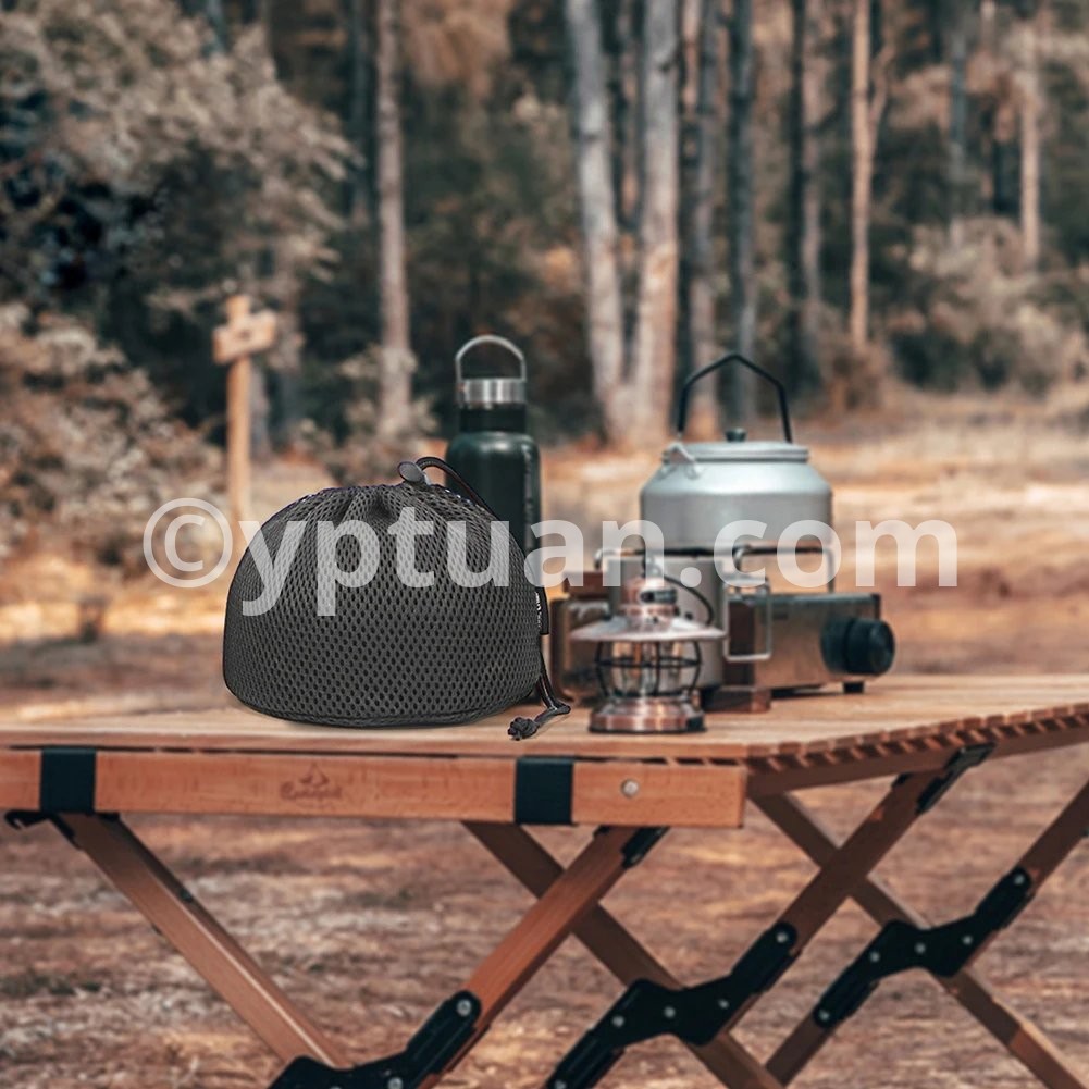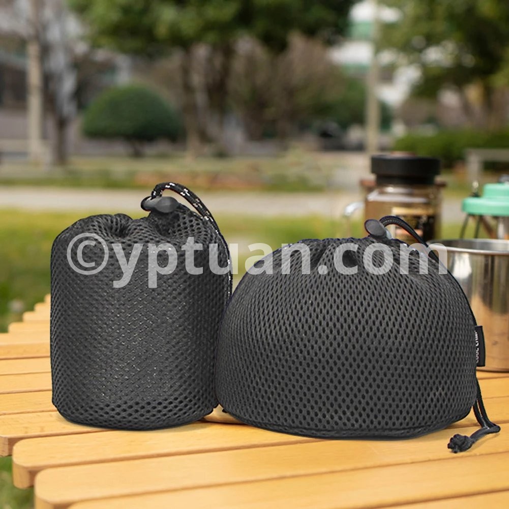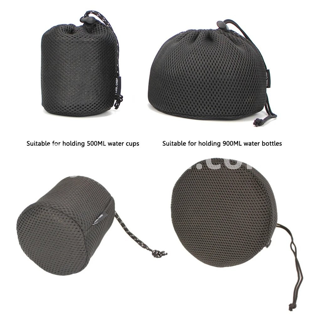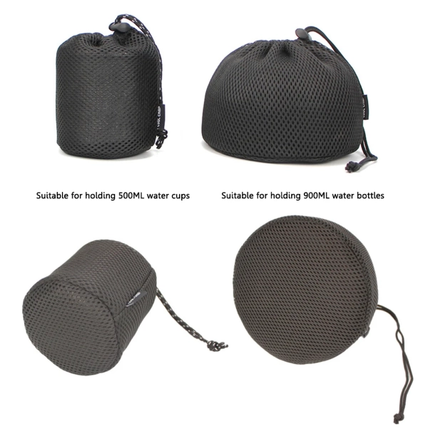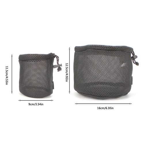 Camping Cooker Stove Tableware Protective Bag Portable Cutlery Holder Drawstring Bowl Plate Pot Organizer for Hiking Travel BBQ Feature: 1. Durable Mesh Bag: This outdoor set pot storage bag is made from sandwich mesh, ensuring durability and longevity even in rugged outdoor environments. 2. Drawstring Design: The camping cooker stove tableware protective bag features a convenient drawstring closure, allowing for easy carrying and transportation while keeping your items secure. 3. Suitable for: This camping storage bag is designed to perfectly fit 500ml camping cups in the small mesh bag and 900ml kettles in the large mesh bag. It is also suitable for storing various camping tools and utensils. 4. Ideal for: Whether you're going camping, hiking, picnicking, having a BBQ, or embarking on a backpacking adventure, this sundry pouch is perfect for organizing your essentials and keeping them easily accessible. 5. Versatile Storage Solution: In addition to cup and kettle storage, this camping carrying bag can be used to store other items such as cutlery, kitchen utensils, and more. Its versatile design makes it a must-have for any outdoor enthusiast.Specification: Material: Sandwich mesh Color: gray black Size: Small: 11.5cm/4.53in * 9cm/3.54in Large: 12.5cm/4.92in * 16cm/6.30in Usage: Small mesh bags are suitable for holding 500ML camping water cups, while large mesh bags are suitable for holding 900ML water bottles. Note: Due to the different monitor and light effect, the actual color of the item might be slightly different from the color showed on the pictures. Thank you! Please allow 1-2cm measuring deviation due to manual measurement.