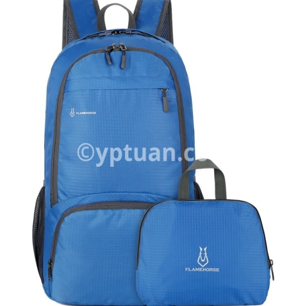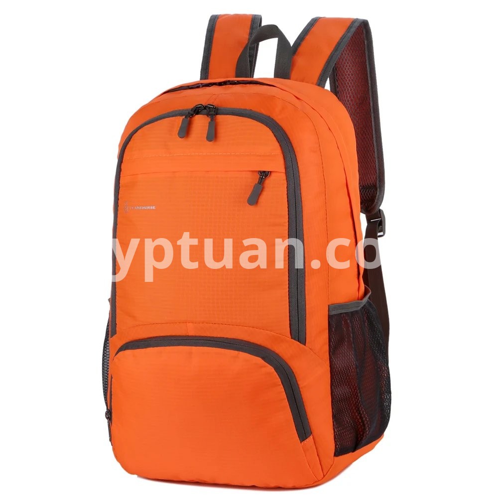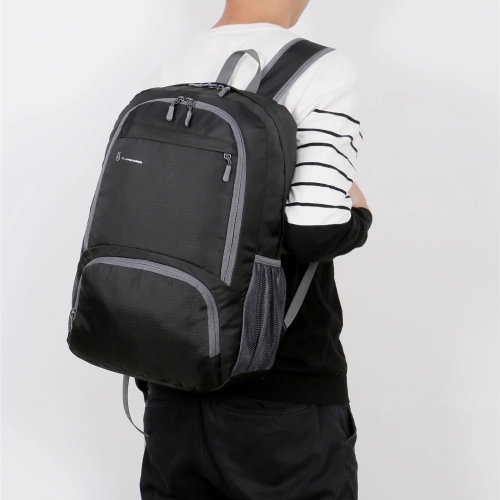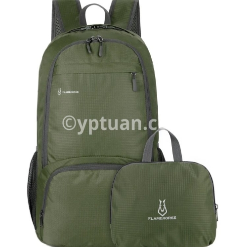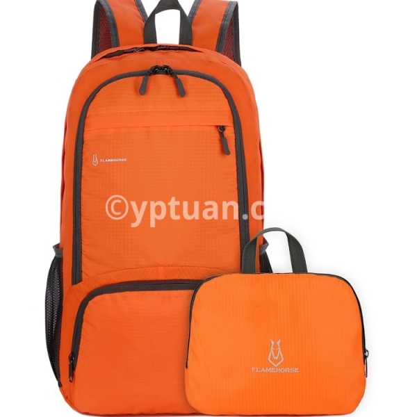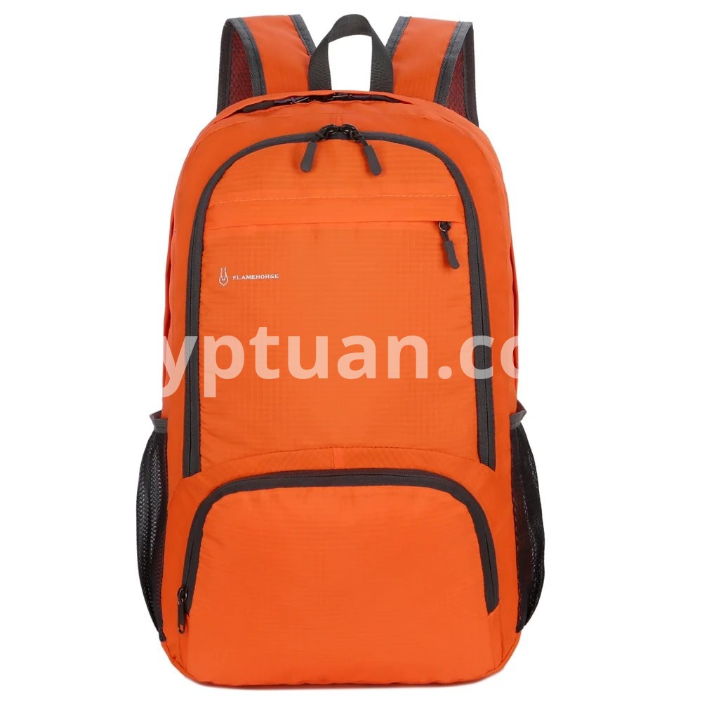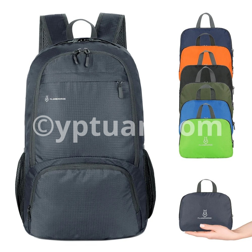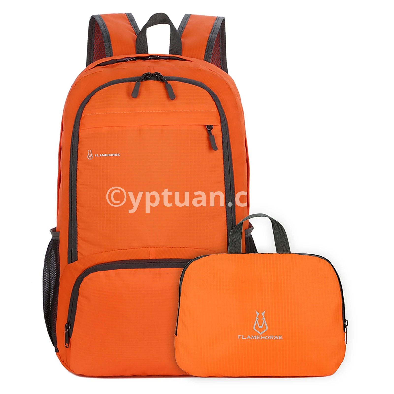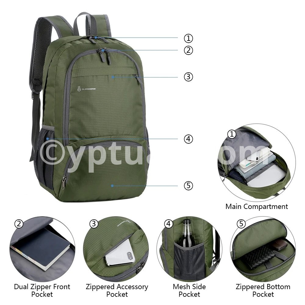 Made with premium nylon fabric, the backpack is lightweight and water-resistant. It features a main compartment, 3 zippered front pockets and 2 mesh side pockets to keep your items organized. It is foldable into a compact size for convenient storage, great for camping, hiking, cycling, traveling, and other outdoor activities.
