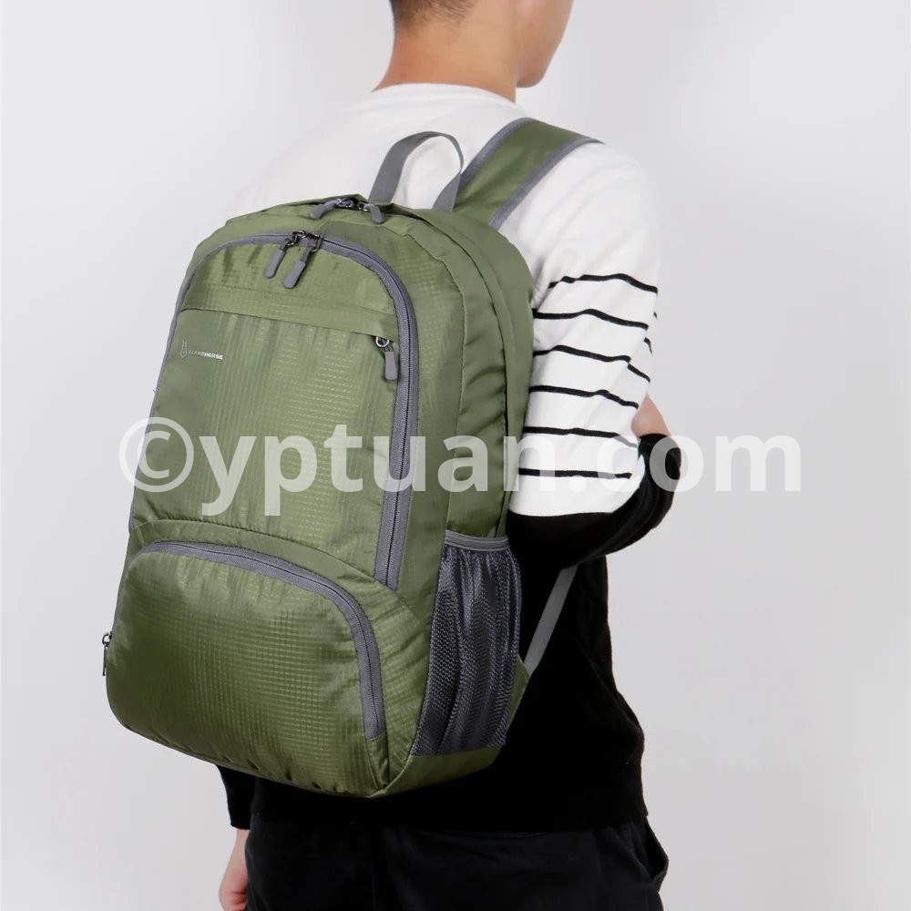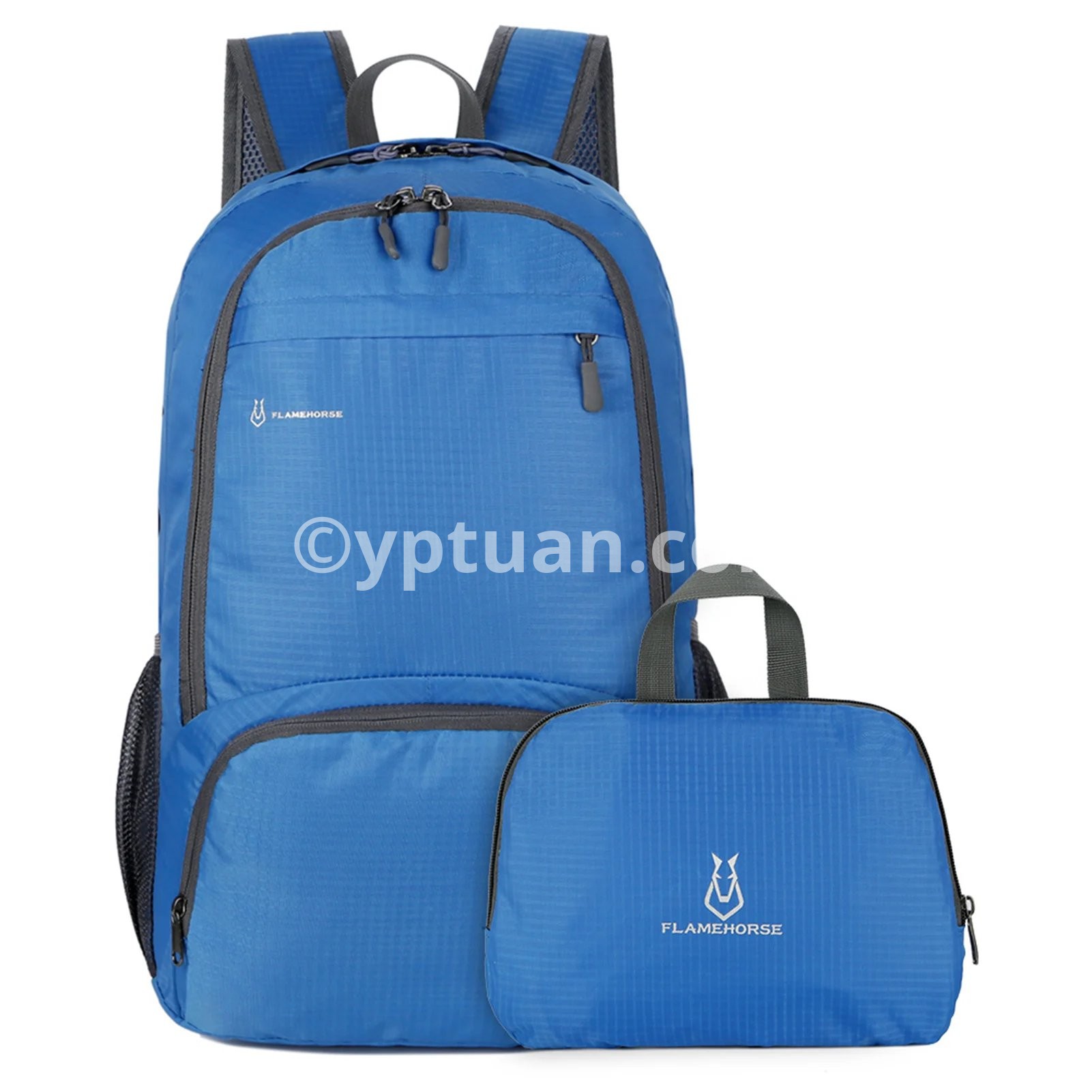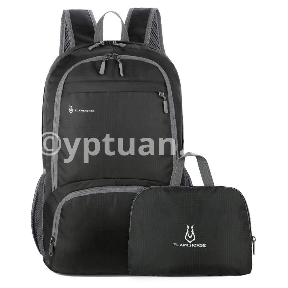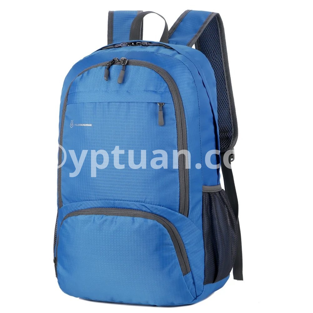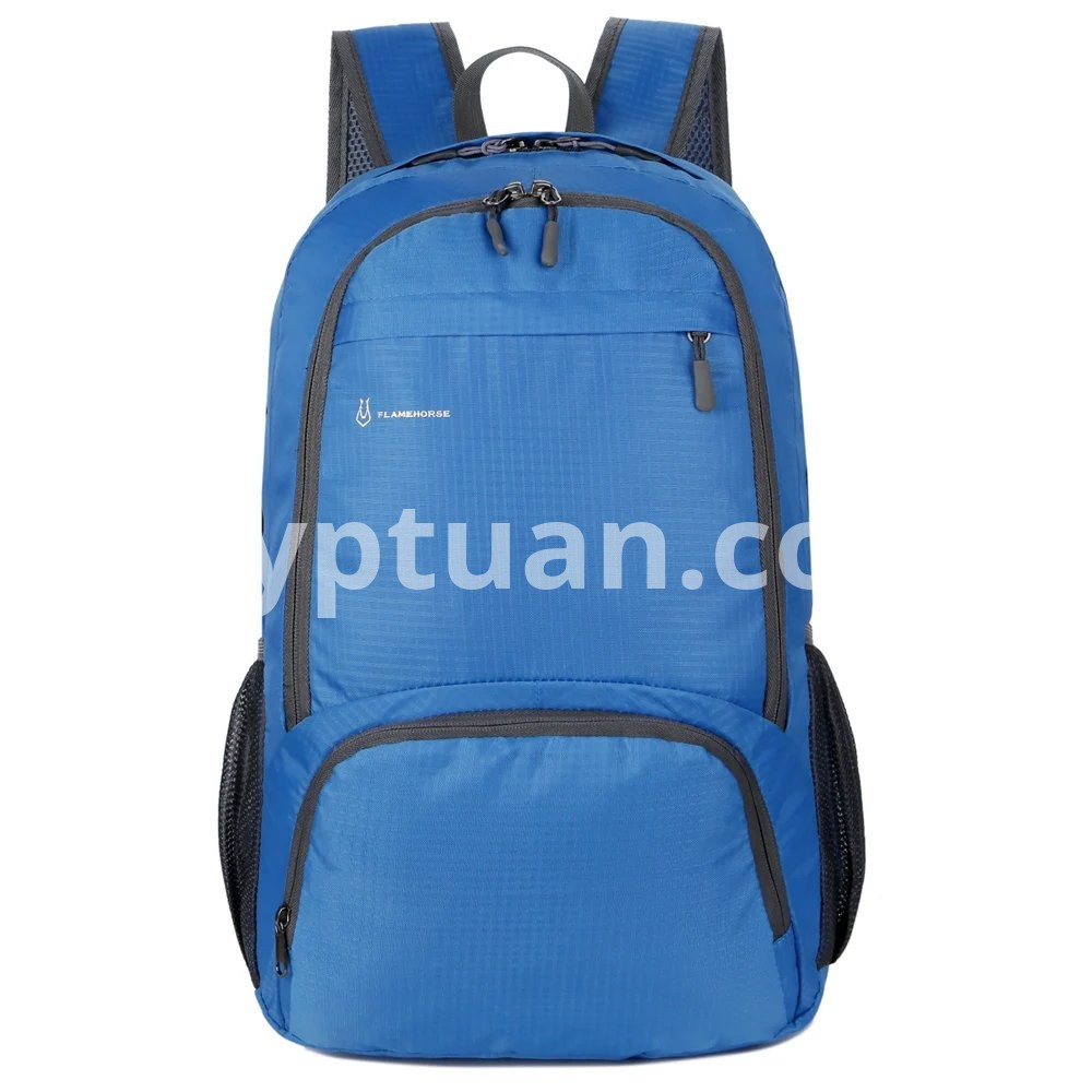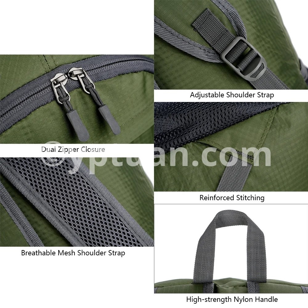 Made with premium nylon fabric, the backpack is lightweight and water-resistant. It features a main compartment, 3 zippered front pockets and 2 mesh side pockets to keep your items organized. It is foldable into a compact size for convenient storage, great for camping, hiking, cycling, traveling, and other outdoor activities.