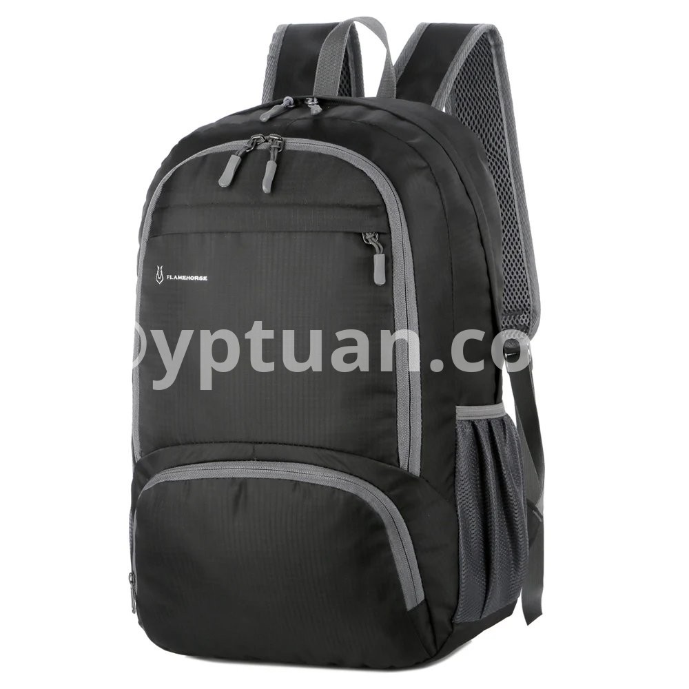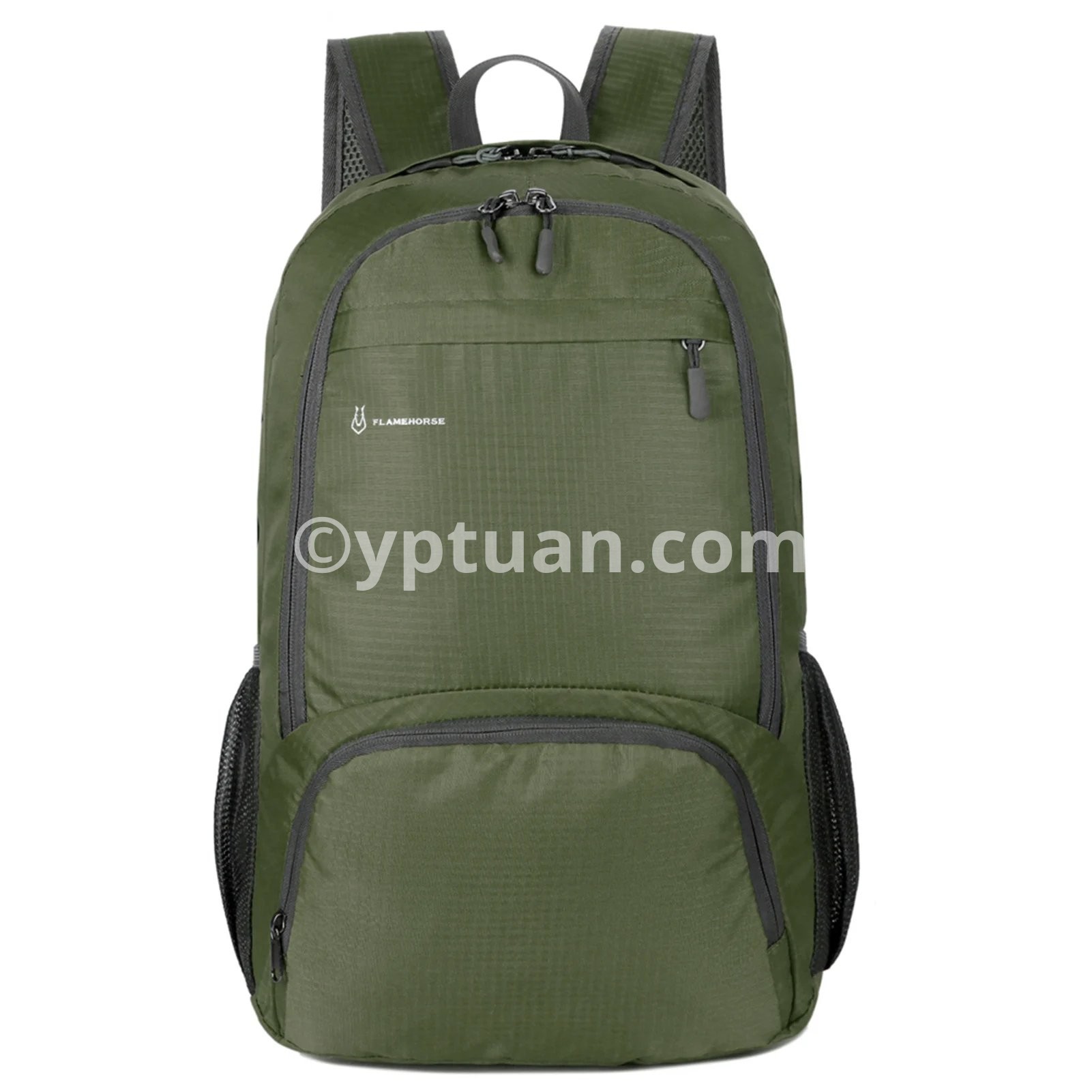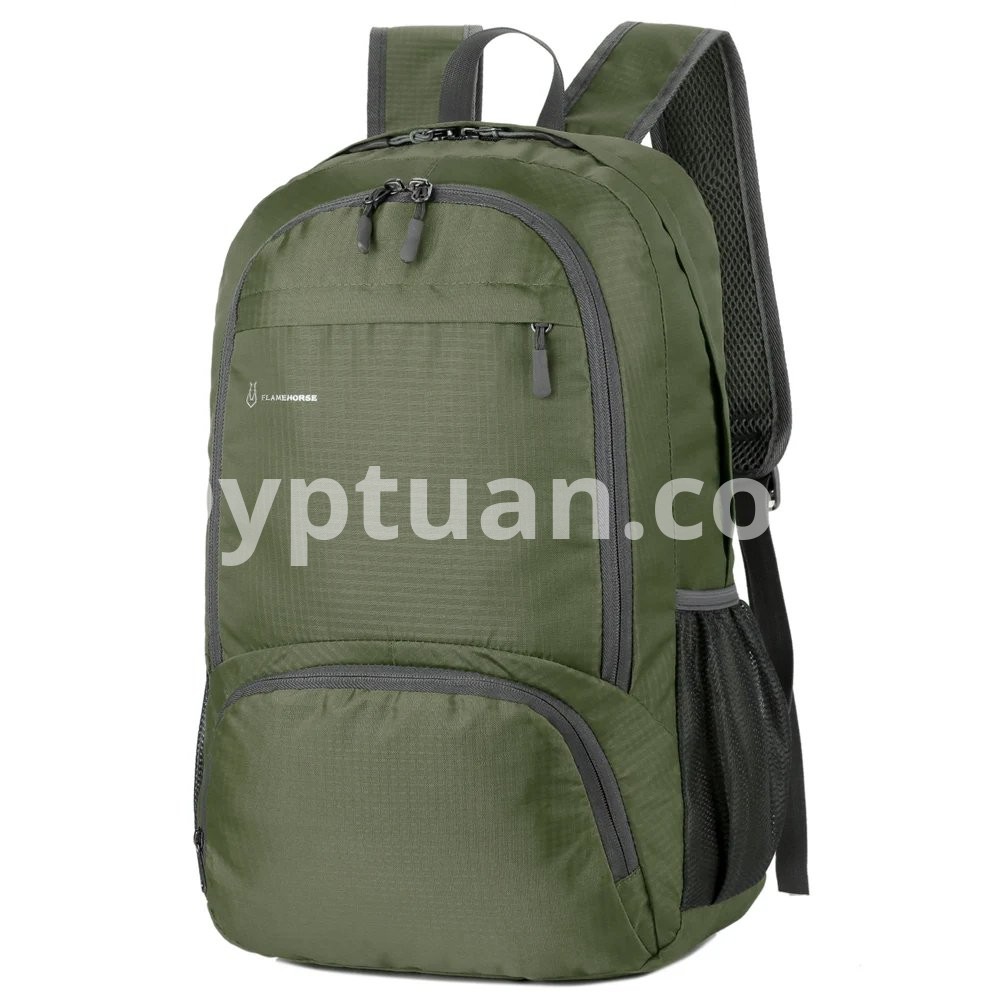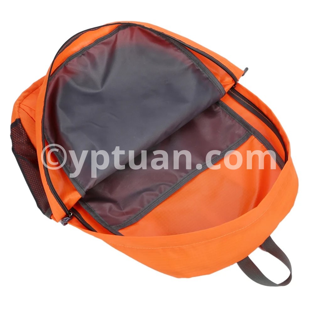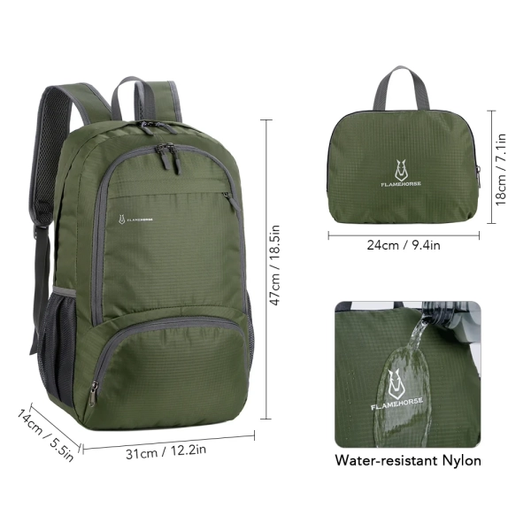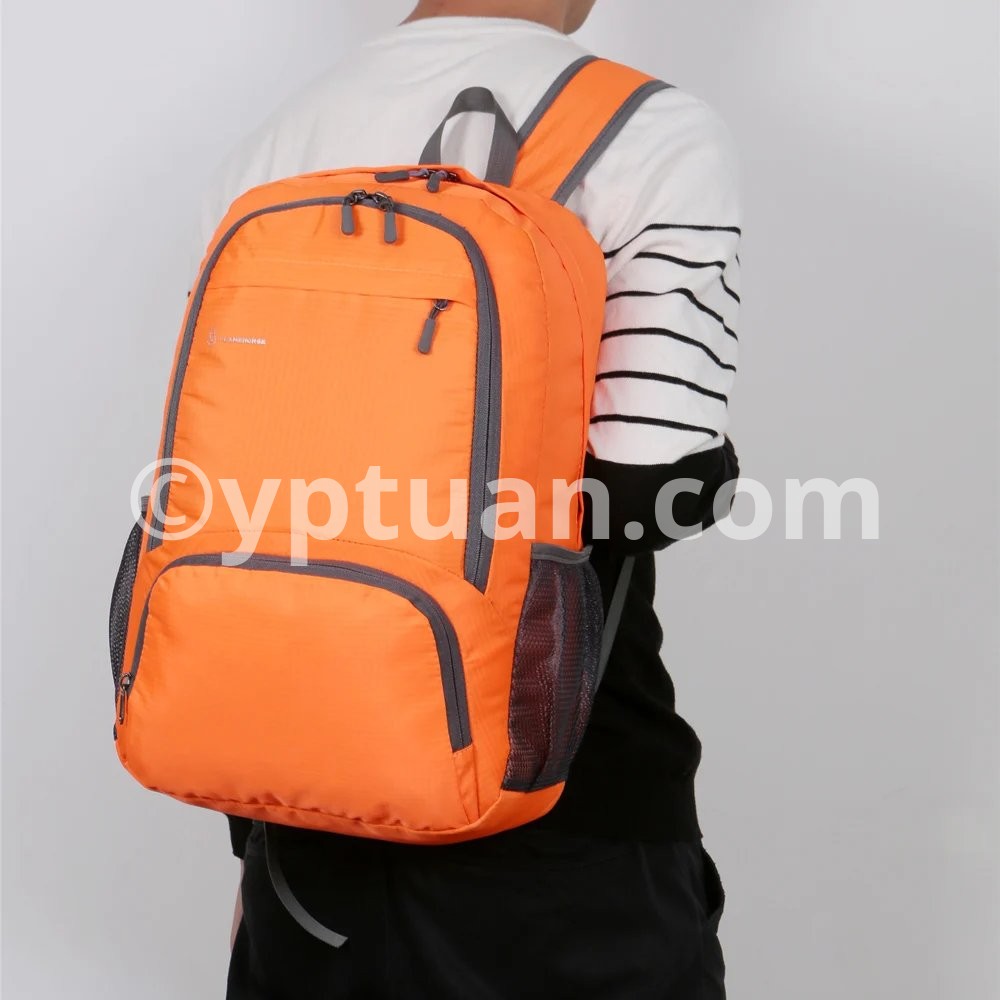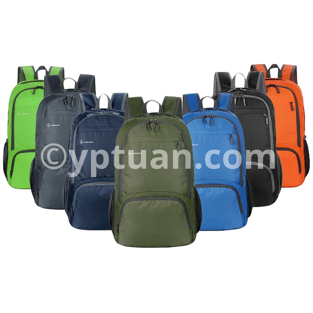 Made with premium nylon fabric, the backpack is lightweight and water-resistant. It features a main compartment, 3 zippered front pockets and 2 mesh side pockets to keep your items organized. It is foldable into a compact size for convenient storage, great for camping, hiking, cycling, traveling, and other outdoor activities.