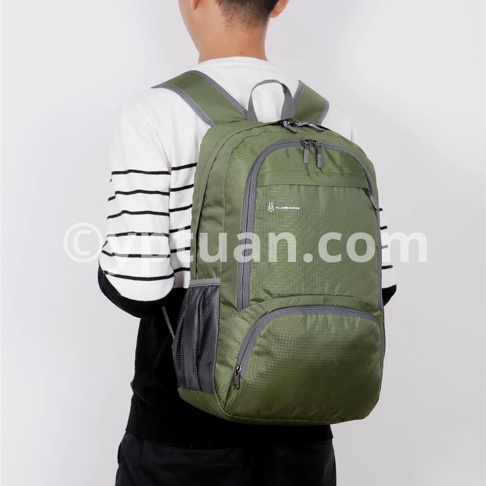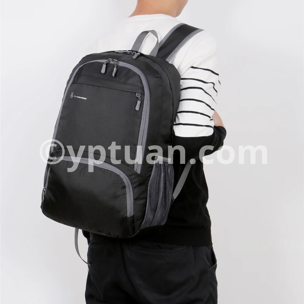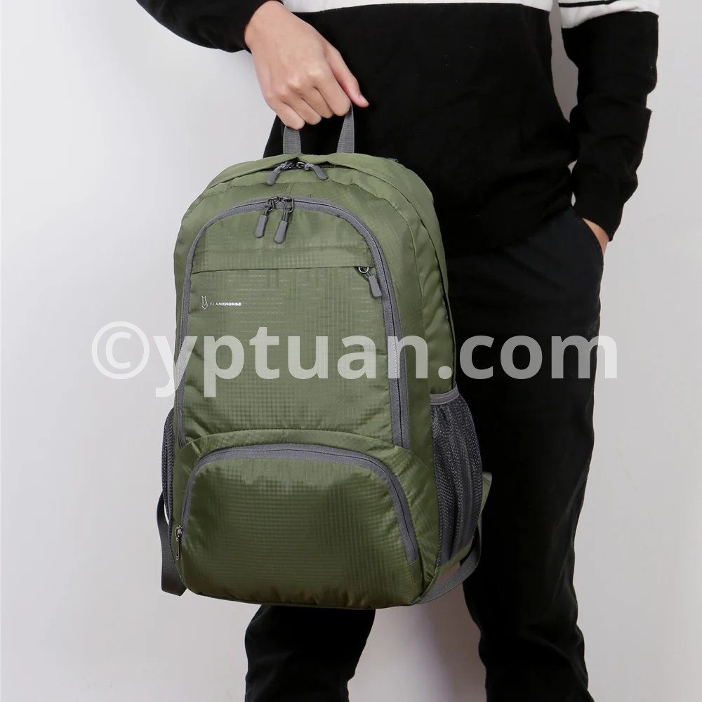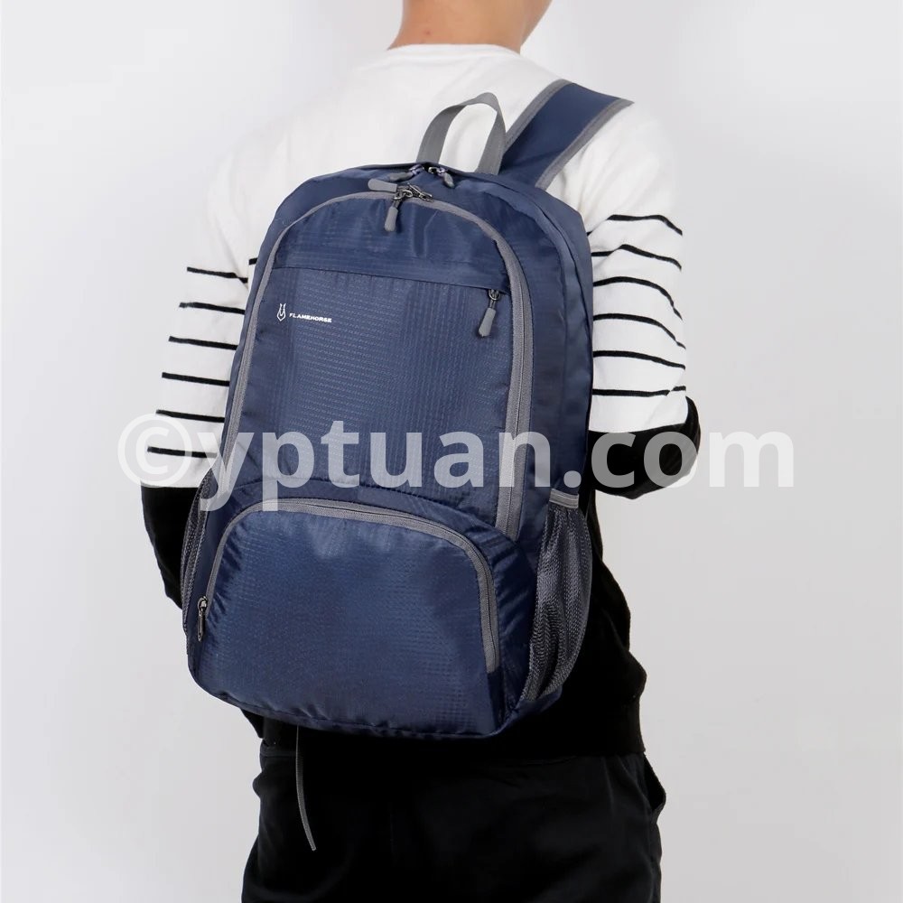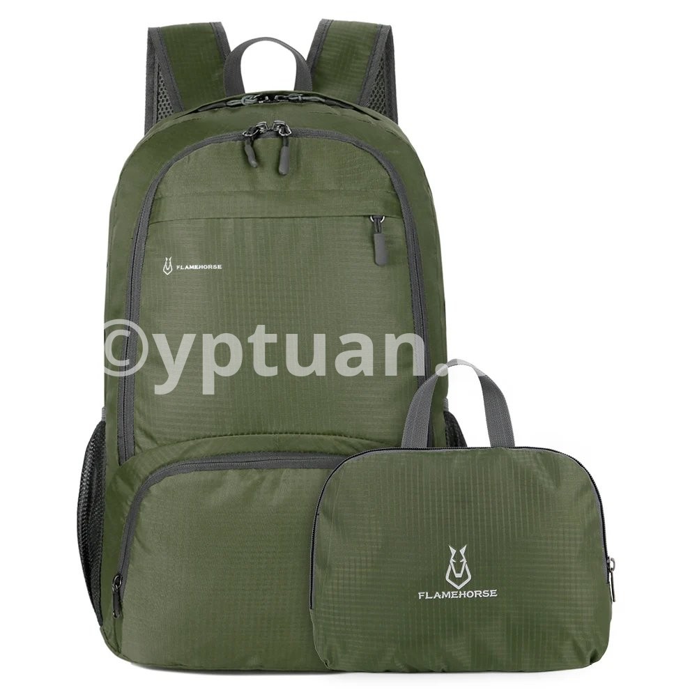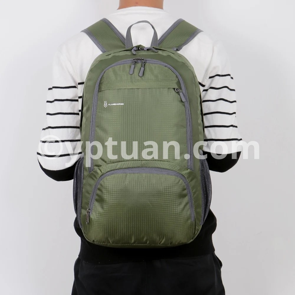 Made with premium nylon fabric, the backpack is lightweight and water-resistant. It features a main compartment, 3 zippered front pockets and 2 mesh side pockets to keep your items organized. It is foldable into a compact size for convenient storage, great for camping, hiking, cycling, traveling, and other outdoor activities.