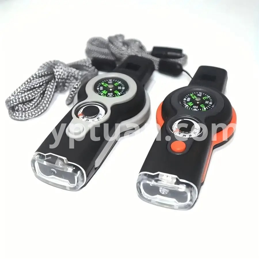 7 in 1 Emergency Safety Whistle with Lanyard Multifunctional Tool Multi-Functional LED Outdoor Compass Hiking Electronic Whistle