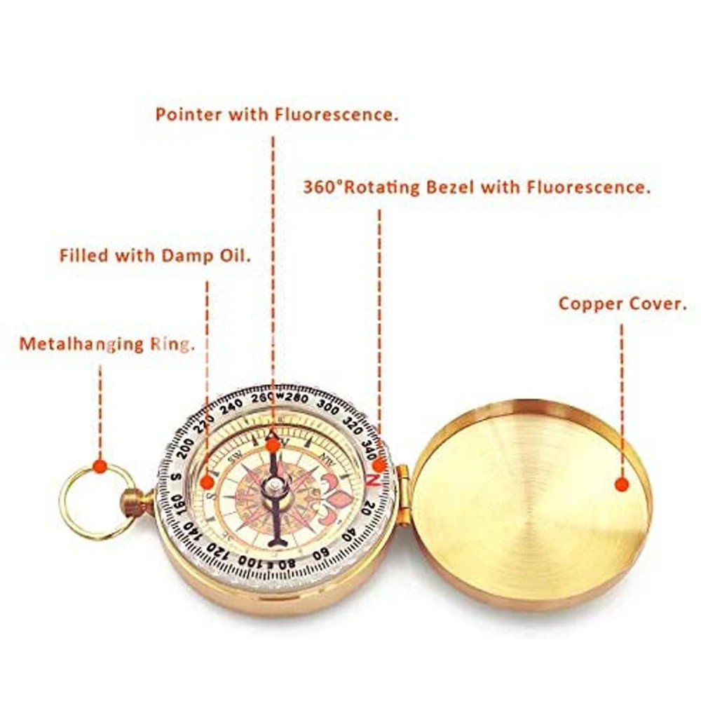 Camping Survival Compass Metal Pocket Compass Kids Compass for Hiking Camping Hunting Outdoor Navigation Tool