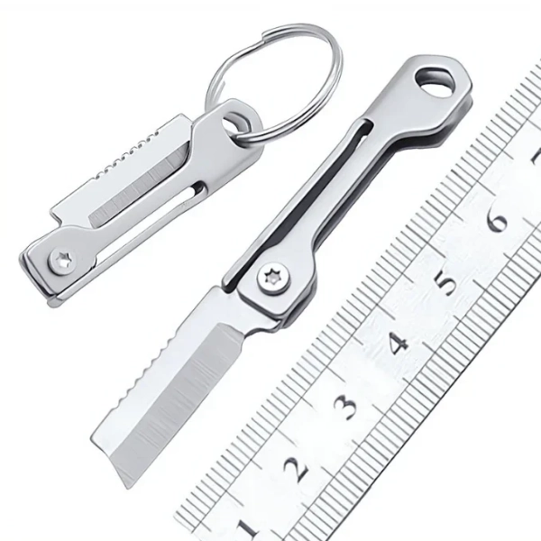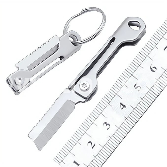 1Pc Outdoor Camping Supplies Stainless Steel Folding Knife Mini Square Head Keychain Pendant Portable Pocket Knife