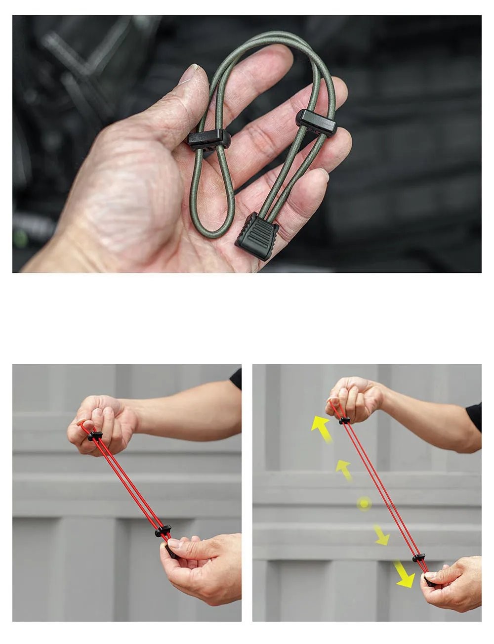 2PCS Outdoor Elastic Rope Adjustable Backpack Mountain Walking Stick Holder Trekking Hiking Pole Fixing Tie Cord Rope Buckle