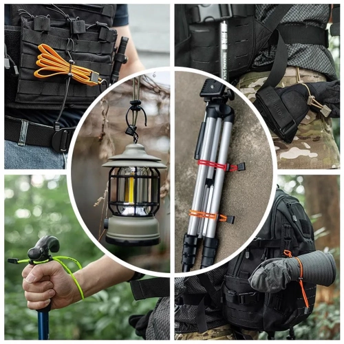 2PCS NEW Outdoor Elastic Rope Adjustable Backpack Mountain Walking Stick Holder Trekking Hiking Pole Fixing Tie Cord Rope Buckle