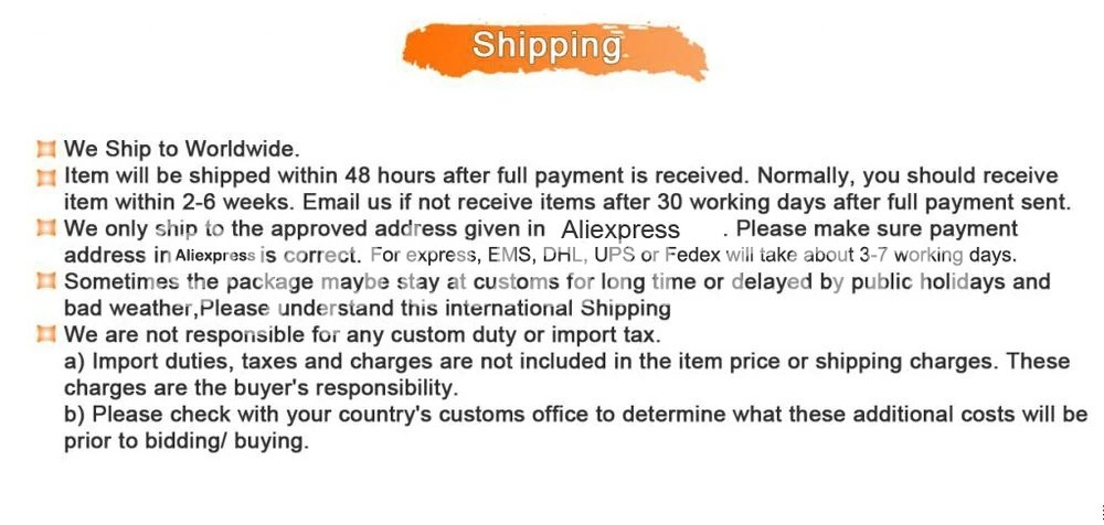 Delivery Country: United States, United Kingdom, Germany, France, Italy, Denmark, Sweden. We will send the product from the US warehouse,the UK warehouse or the German warehouse according to your address.