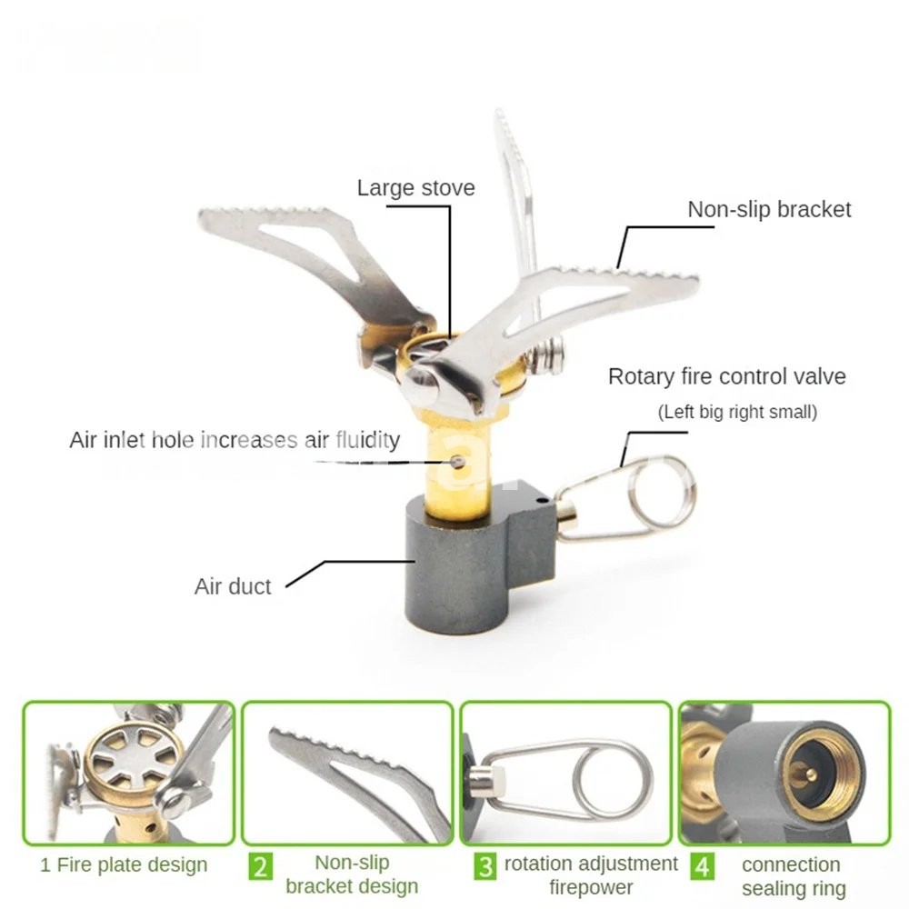 Outdoor Gas Stove Camping Burner Portable Mini Folding Stove Gas Heater Survival Furnace Foldable Furance Head for Picnic Cooker
