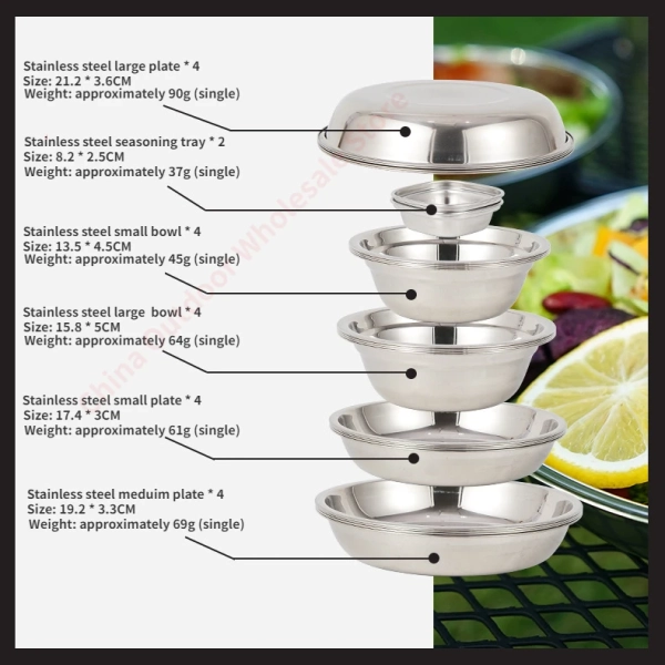 Material: 201 stainless steel, sauce dish 304 stainless steel