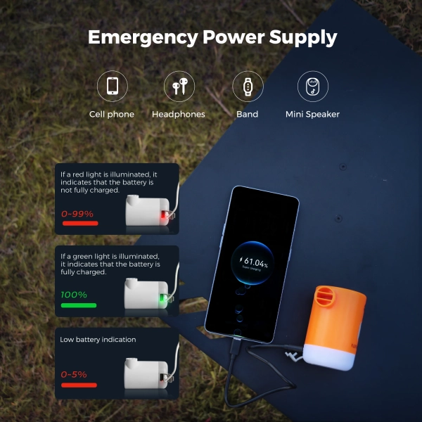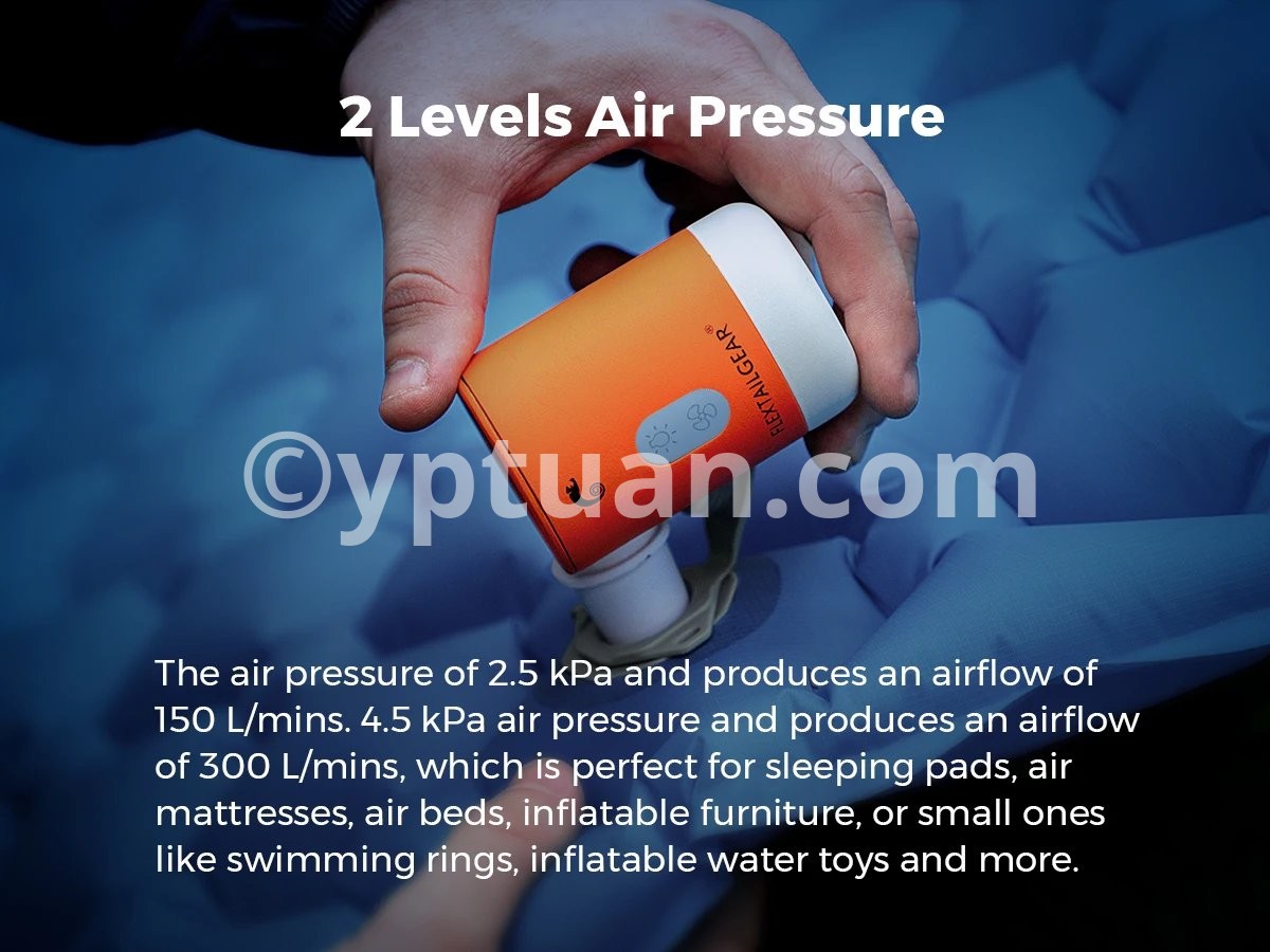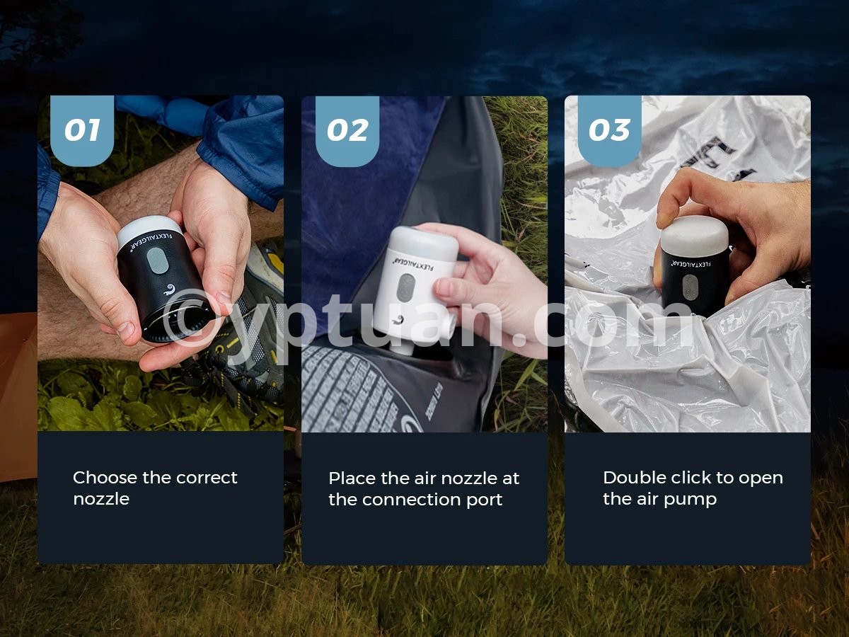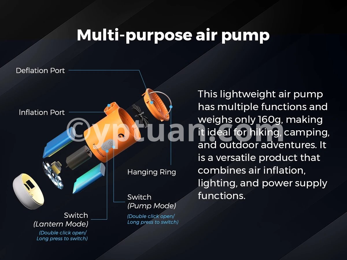 FLEXTAIL Portable Air Pump, Electric Inflator with Camping Light and EPS Function, Ideal for Sleeping Pads, Air Bed, Vacuum Bags