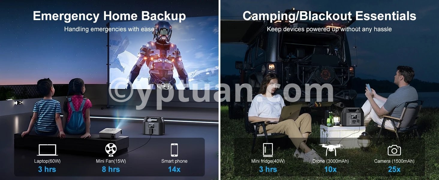 Output: 1*AC outlet(150W/110V), 2*USB-A (5V/3.1A), 1*Type-C(5V/3A 9V/2A), 2*DC Ports(11-14.6V/10A max)