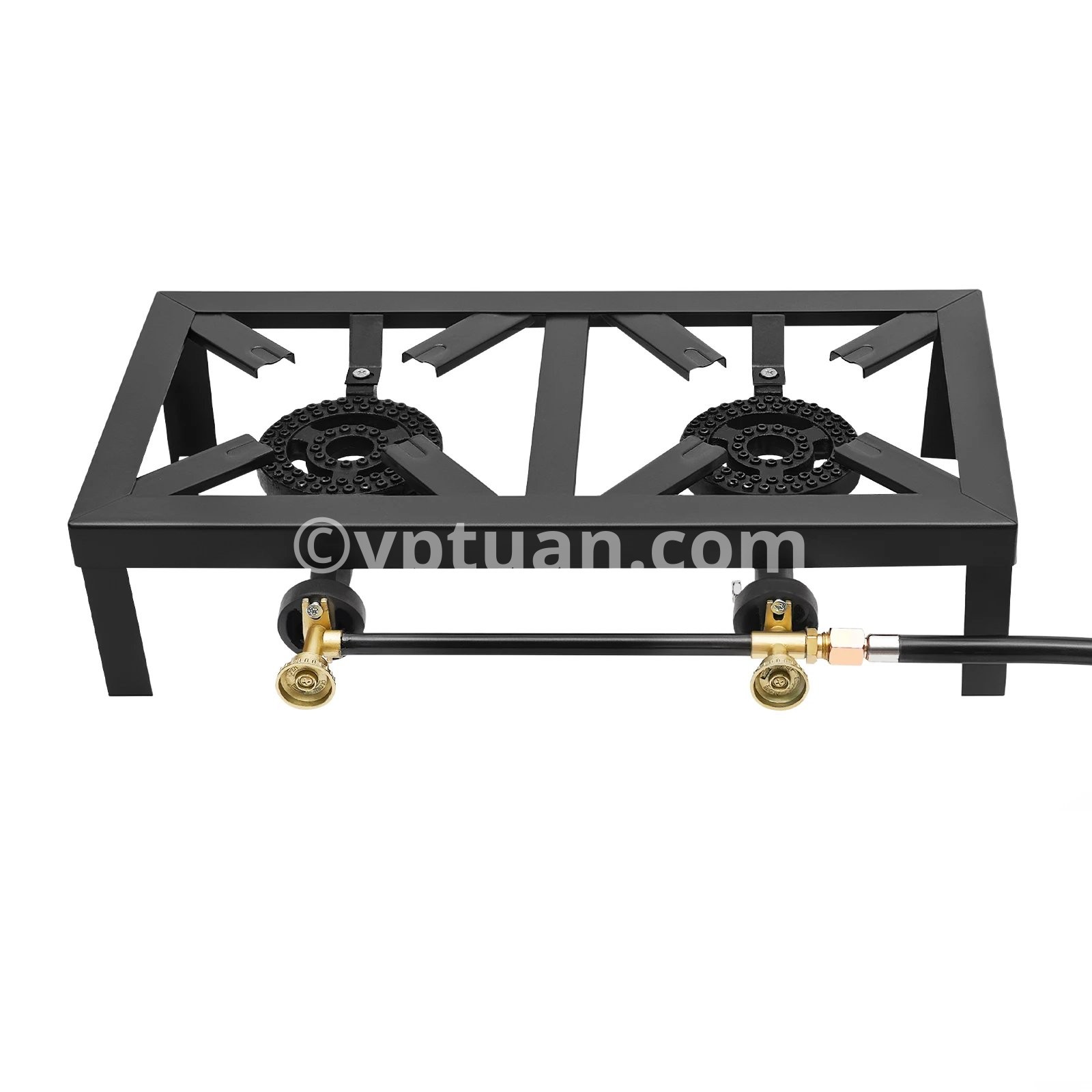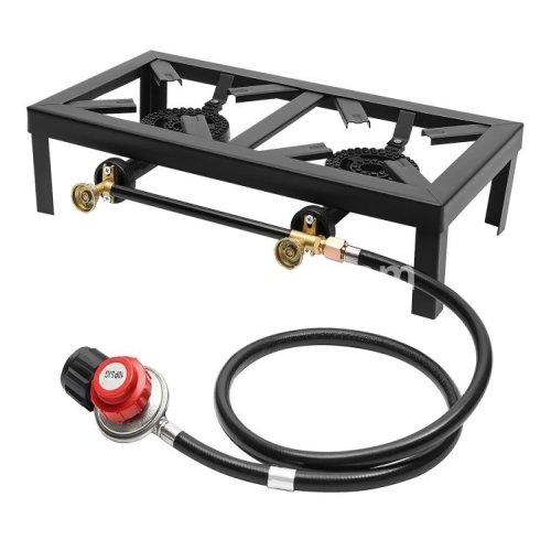 Color: Black Martial: Cast Iron Process: Plastic Spraying Assembly Required: Yes Shape: Rectangular Fuel Type: Gas Interface: 3/8" Number of Burners: 2 Power Source: Gas Powered Mounting Type: Free-standing The Max. Power of Each Burner: 8000W Pressure Regulation Range: 0-10PSI Hose Length: 1.2m/3.9ft Product Size: 48*25*11.5cm/18.90*9.84*4.53 inch Package Size: 49*27*13cm/19.29*10.63*5.12 inch Gross Weight: 3.6kg/7.94lb Net Weight: 3.08kg/6.79lb