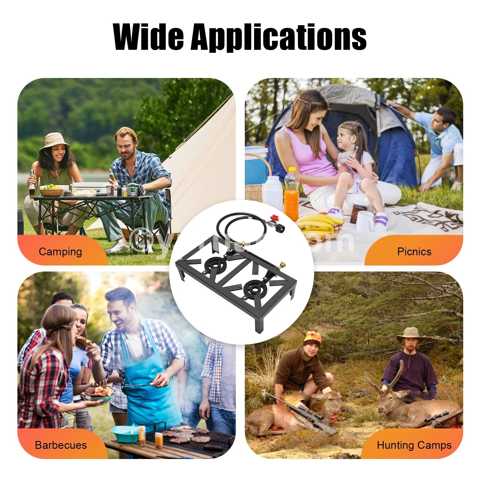 1*Camping Double Burner Stove 1*Regulator Hose All Accessories for Assembly