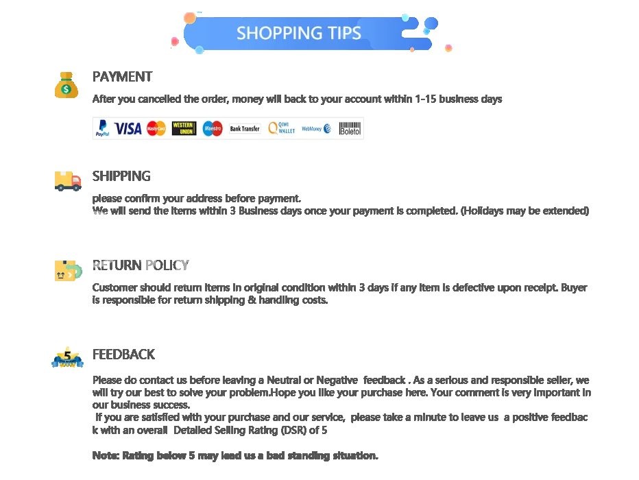 1. Due to the influence of many factors such as display brightness and light brightness, the actual color of the item may be slightly different from the picture displayed on the website.