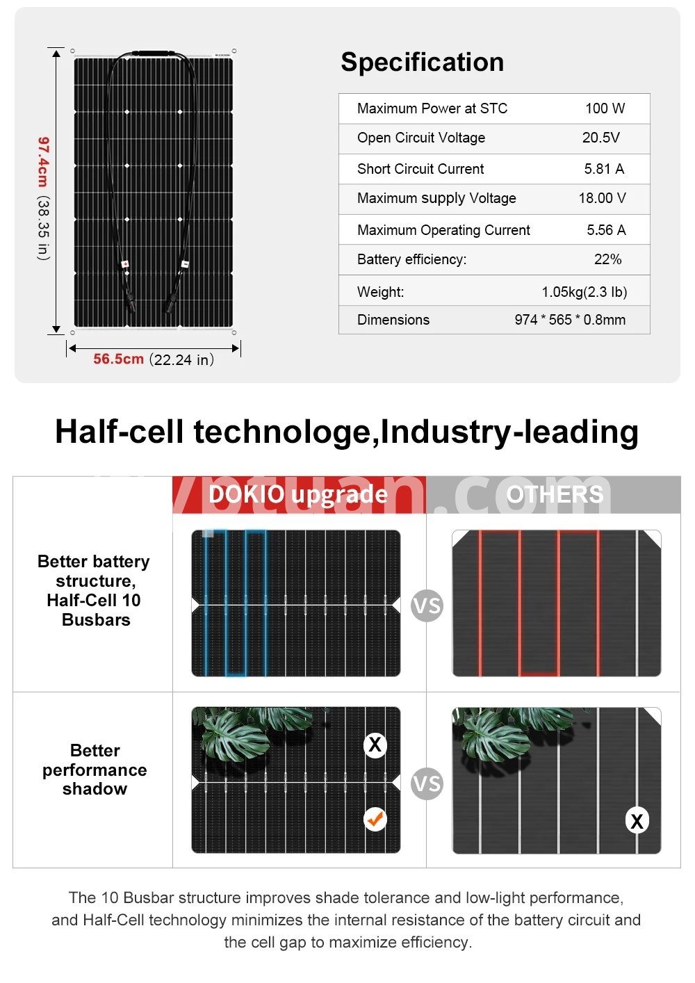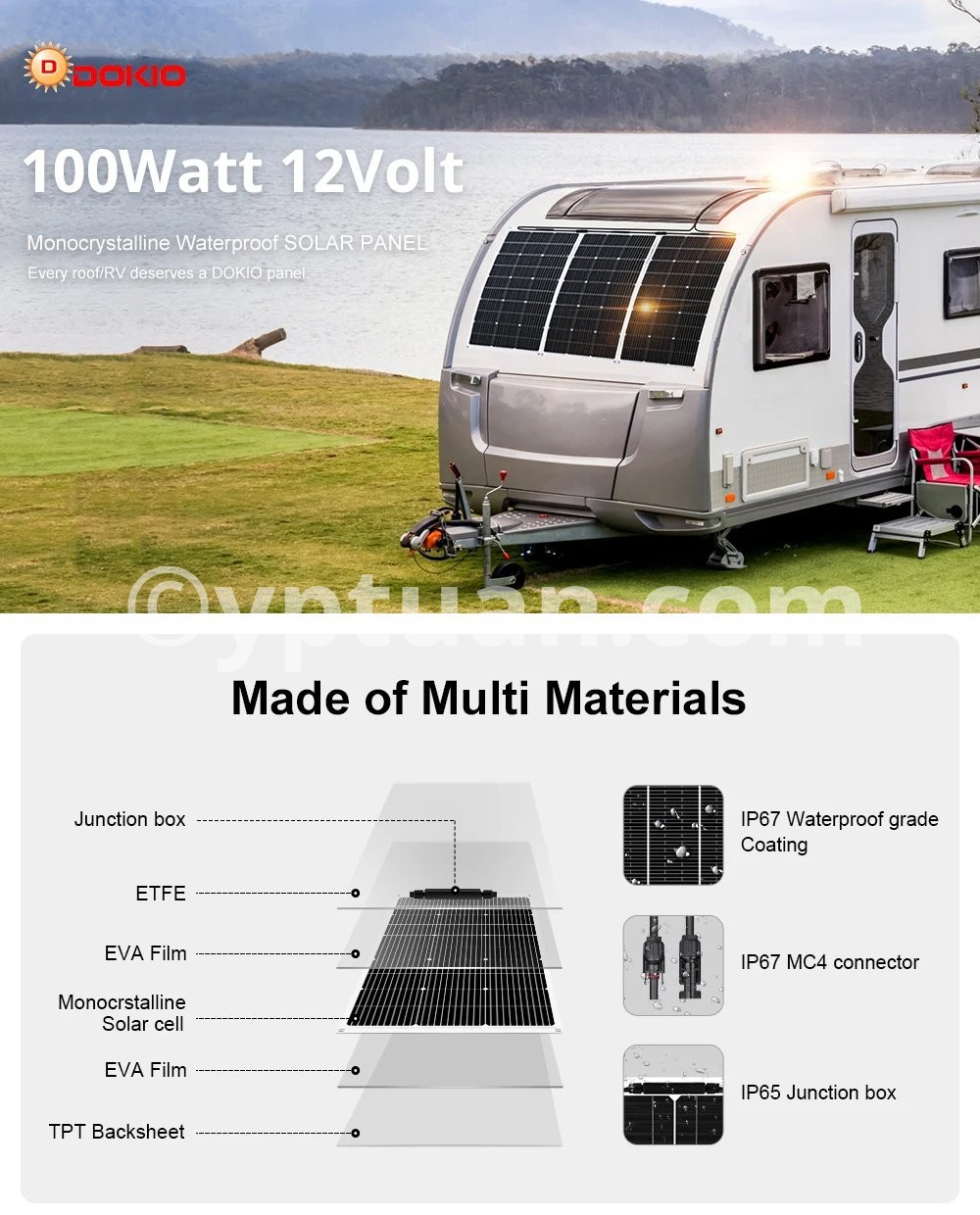 DOKIO 18V 200W/200W set Flexible Solar Panels Waterproof Monocrystalline Solar Panel Camping RV Home Charge 12V