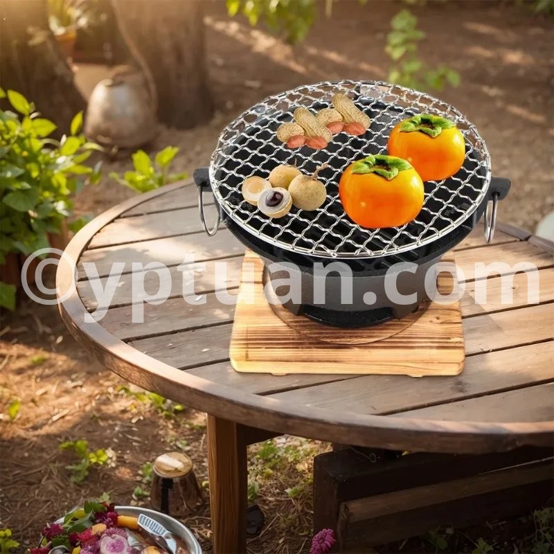 3. Stable and Safe: Featuring a wooden base that provides a non-slip surface, our charcoal grill remains stable and secure during use, minimizing the risk of accidents while grilling your favorite foods.