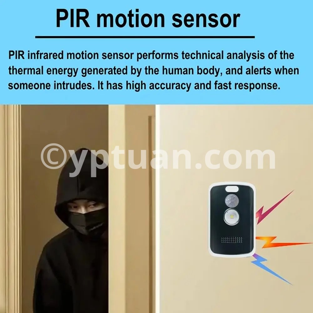 See more product details 1.Effective Intrusion Protection: Set your motion sensor alarm before bed for enhanced protection. Keep intruders like thieves and coyotes at bay with a loud sound and bright lights that effectively prevent big invasions, ensuring your family's safety. 2.Enhanced Security: With a long press, effortlessly arm/disarm and activate the alarm with 3 quick presses. Toggle through multiple light modes with a short press and press-and-hold to turn off. In case of urgent, activate flash SOS mode by pressing 3 times quickly. 3.Multiple Functions: Create a custom perimeter around your property with the Portable Motion Sensor Alarm to sound an alarm or scare away animals. Perfect for protecting your house or campsite with an active defense feature. 4.Effortless Control: Enjoy a stress-free security experience with our Portable Motion Sensor Alarm. Simply place or suspend it anywhere, use the wireless remote control, and gain peace of mind without any complex installation steps. 5.Widely Used: Equipped with lighting and flash calling functions, our Portable Motion Sensor Alarm provides enhanced security during outdoor activities such as wild camping and night fishing.