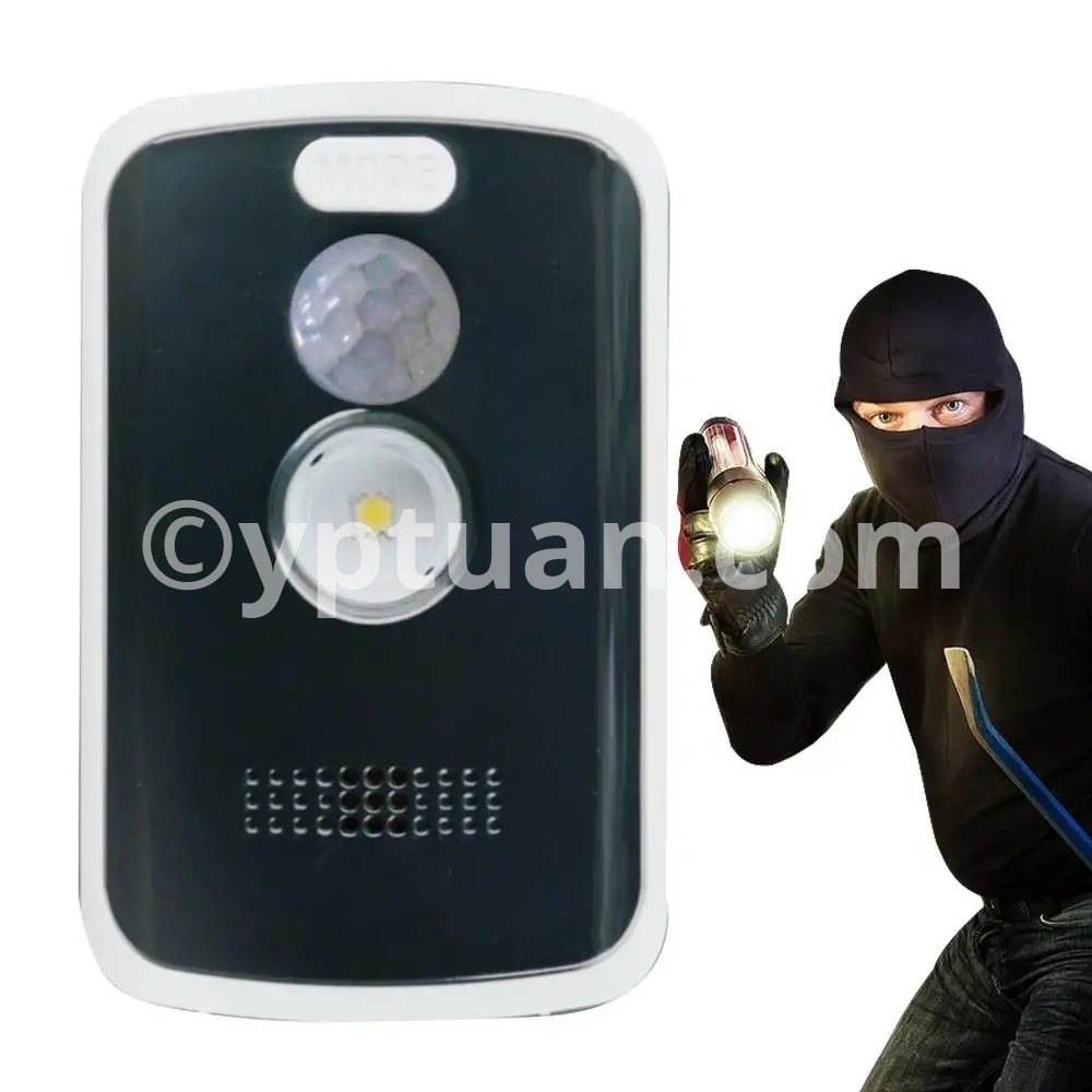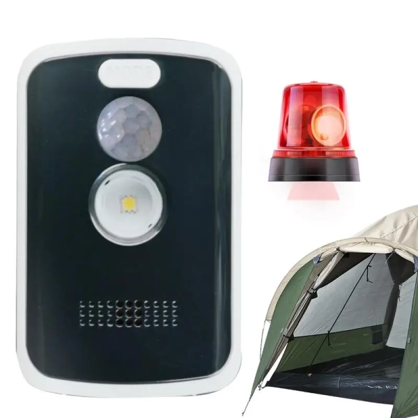 Keep your campsite safe with Portable Motion Sensor Alarm. Set the alarm mode at night and press and hold to enter arming mode. Just place or hang it where needed and enjoy your trip worry-free. With lighting and flash calling functions, you won't miss a beat. Specification: Product material: ABS Volume ≥: 125 decibels Voltage: 1.5V Sensing method: PIR pyroelectric human body sensing Sensing distance: 3-5 meters Sensing angle: 120 degrees Alarm volume: 125 decibels Product size: about 7.7x5x2.4cm/3.03x1.97x0.94 inches Battery: 1* AA alkaline battery (need to prepare yourself) Standby time: about 3 years (in standby mode) Alarm duration: continuous alarm for 8-10 hours Lighting time: 35 hours of continuous lighting Flashing duration: 80 hours of continuous flashing Applicable places: home/factory/shop Packing List: 1* Camp Safe Perimeter Alarm