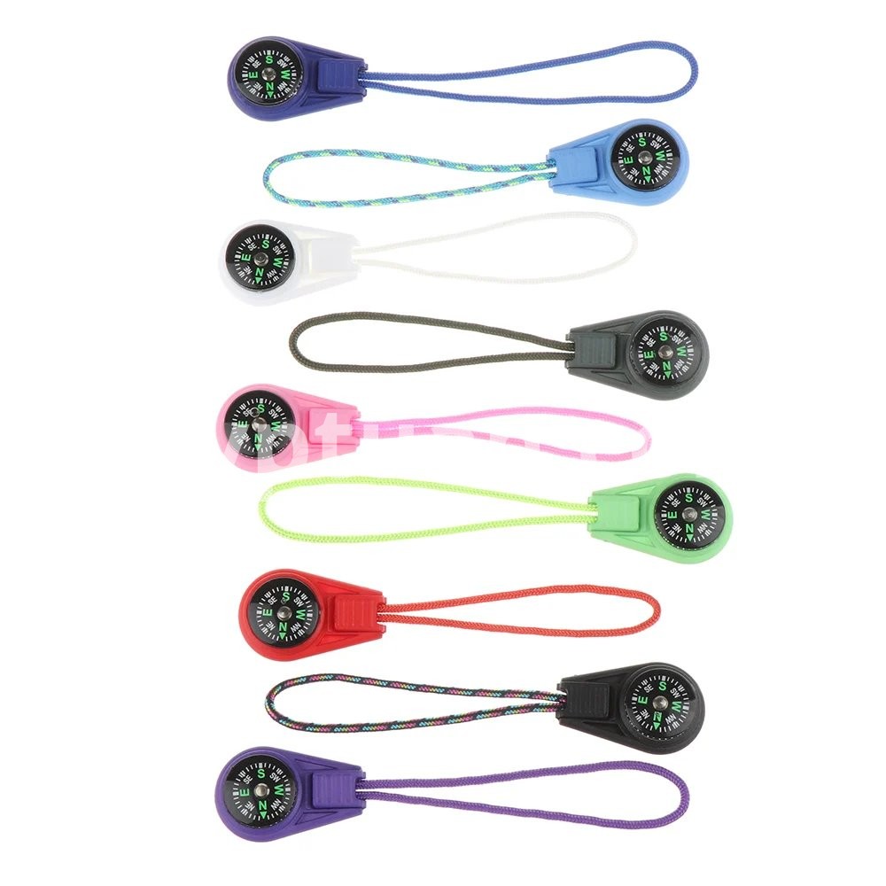 2Pcs EDC Mini Compas with Zipper Tail Rope Paracord Bracelet Gear Survival Keychain Camping Hiking Pocket Compasses Outdoor Tools