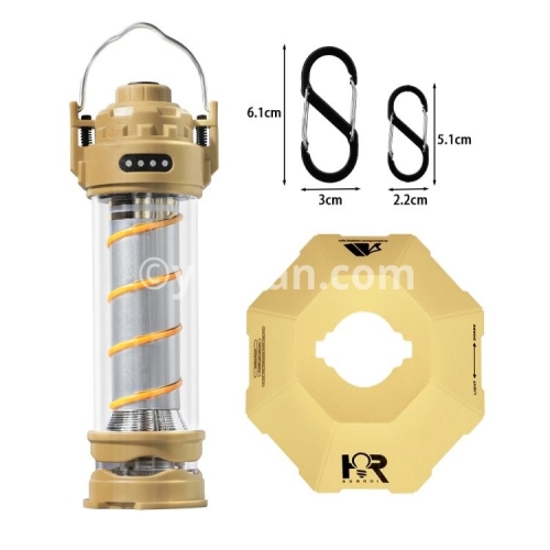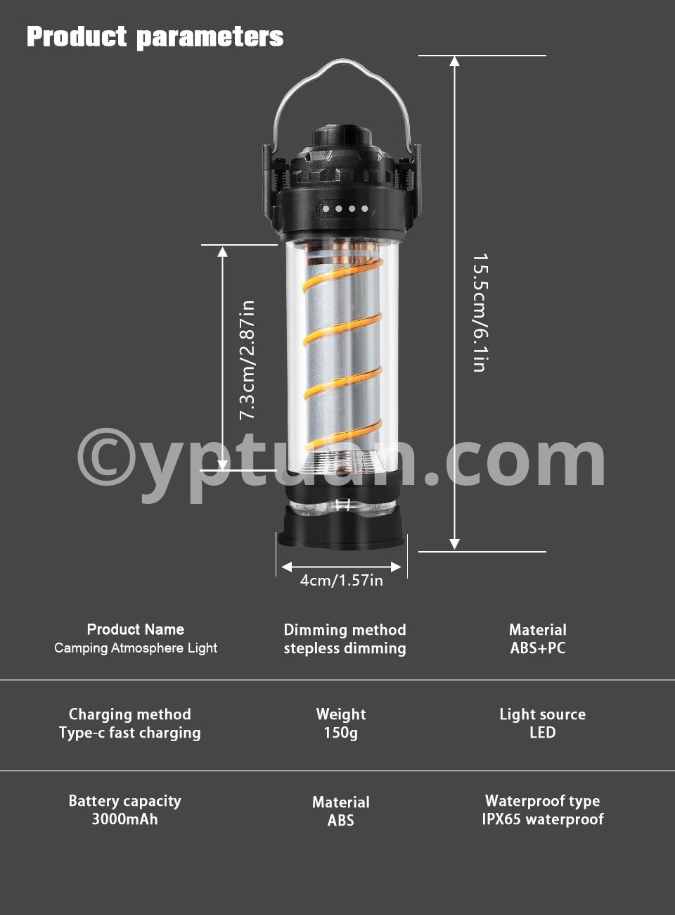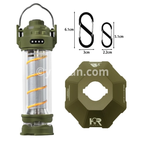 Specification: Material: PC+ABS, resin (lampshade) Color: army green, black, khaki (optional) Weight: 150g Battery: 3000 mA 18650 lithium battery Charging: 1.5-2H Brightness: 35LM-85LM Dimming: Capable of stepless dimming Color temperature: 3100K Waterproof: IPX6