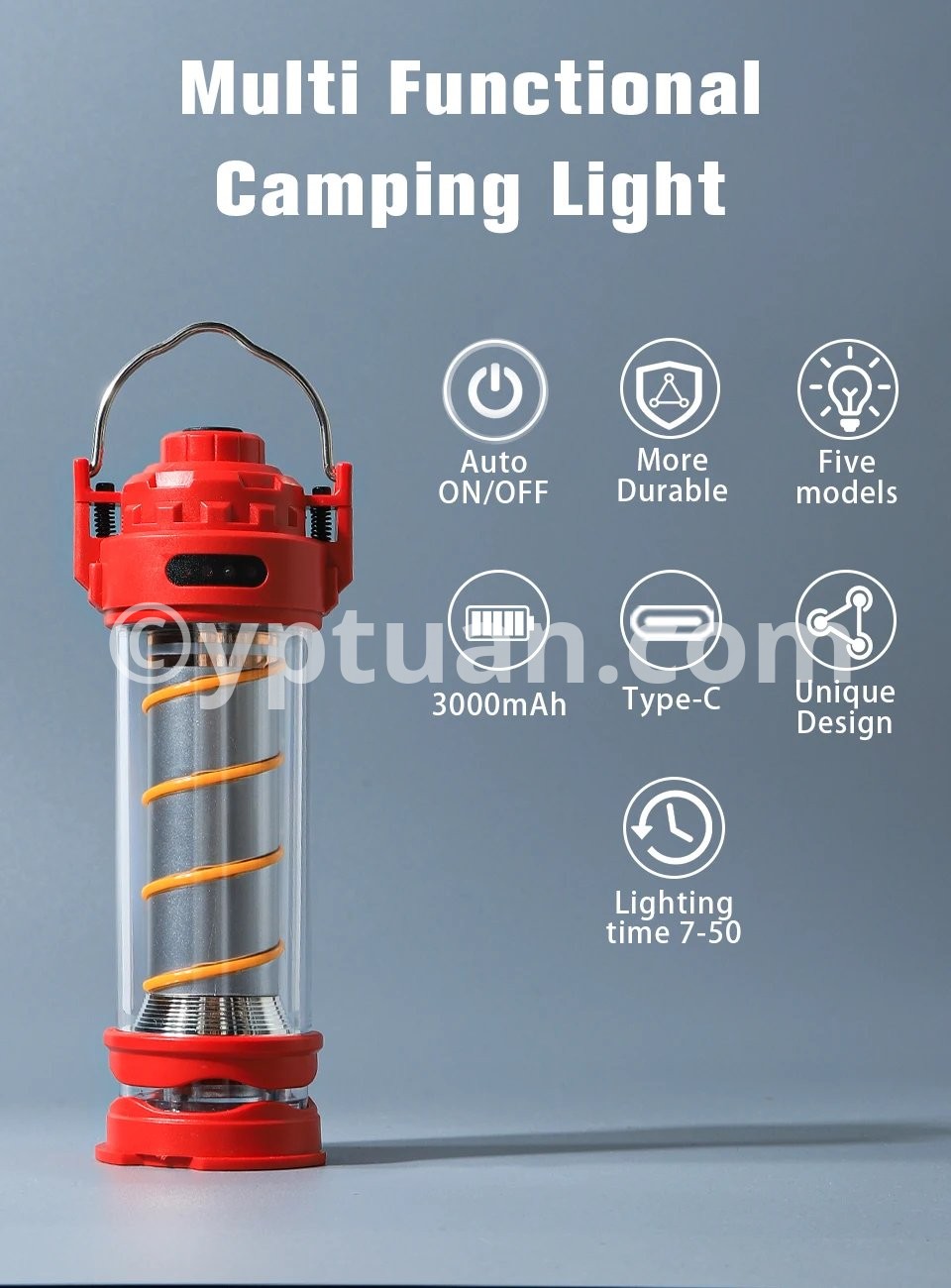 Outdoor LED Camping Light with Tripod 5 Modes USB Charging Emergency Portable Tent Warm Lamp Portable Camping Lantern