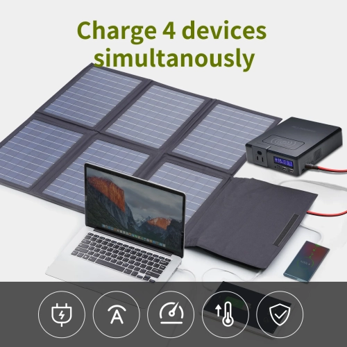 [22% higher exchange efficiency, safe and fast charging with AP-POWER solar charging technology] ALLPOWERS 60W Solar Charger is made of cells with higher solar energy conversion efficiency than regular solar panels. The built-in solar controller utilizes AP-POWER charging technology to automatically track voltage and current to quickly charge devices at maximum power at any time. Moreover, it is equipped with safety features such as overcharge protection, over-discharge protection, reverse connection protection, high temperature protection, and short-circuit protection to ensure safe and rapid charging at any time.