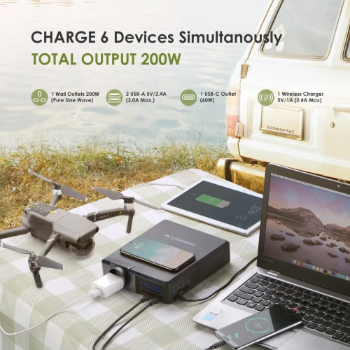 * Portable Generator: with Max 200W & 110V (EU 220V 50Hz)AC output , you can get a continuous power supply for outdoor using or emergency backup, supplying power for lamps, phones, laptops, TVs ,mini fridges, CPAP and even any devices up to 200W