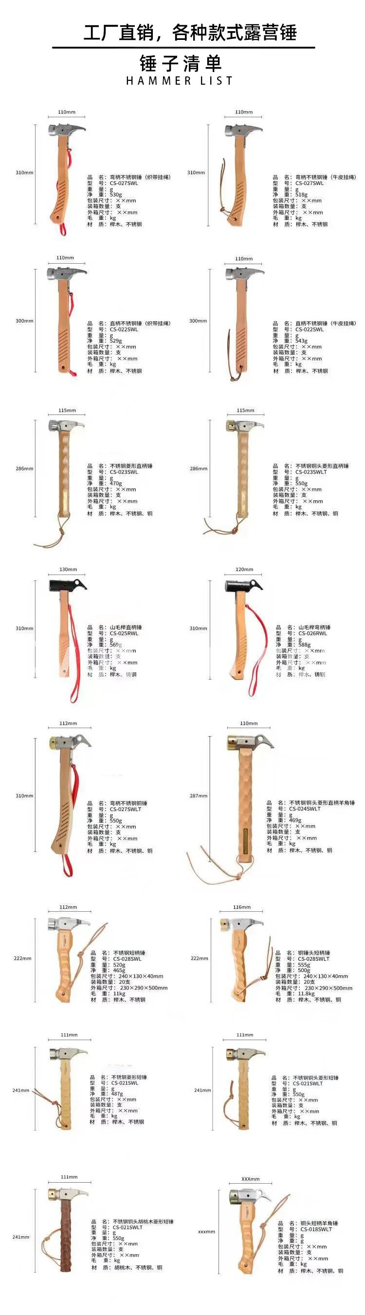 mutifunction stainless steel copper claw hammer for tent pulling out nail camping working hiking tools accessories out door