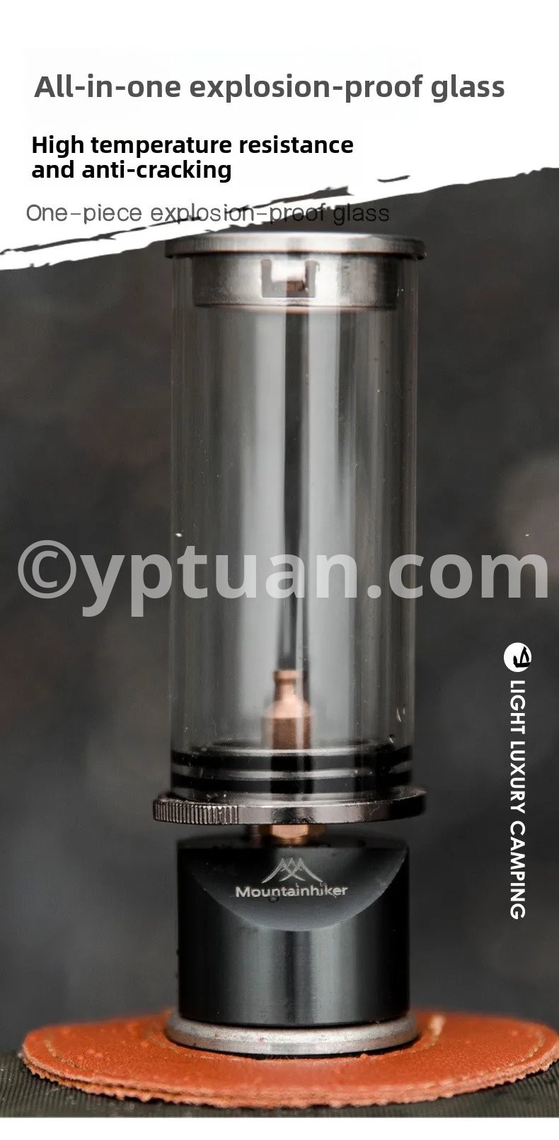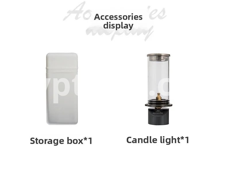 MOUNTAINHIKER Dreamlike Candlelight Lamp Tent Lighting Equipment Camping Lamp Windproof Gas Candle Lamp Outdoor Camping Lights 1. Premium Material Composition: Crafted from aluminum alloy, copper, and stainless steel, this camping gas lantern offers a and elegant structure. Its high-quality materials ensure resistance to corrosion and high temperatures, making it ideal for both indoor and outdoor use. 2. Heat and Wind Resistant: Designed to withstand harsh conditions, this tent night light features a heat-resistant and windproof construction. The tempered glass shade protects the flame, ensuring it stays lit even in breezy environments, perfect for creating a cozy ambiance outdoors. 3. Portable and Lightweight Design: With its compact and lightweight design, this butane gas light lantern is easy to carry, making it perfect for camping, picnics, and other outdoor activities. The convenient size allows for effortless transportation and setup wherever you go. 4. Adjustable Flame Control: The gas candle light features a rotating glass cover that allows you to easily adjust the flame intensity. This practical design ensures optimal lighting for any occasion, providing both functionality and style to your outdoor decor. 5. Versatile Outdoor Use: Ideal for a variety of outdoor activities such as camping, fishing, and road trips, this portable tent lantern enhances any setting. Its reliable performance and elegant appearance make it a versatile addition to your outdoor gear. Specification: Main Material: Aluminum/Copper/Glass Size: 193.00x116.00x75.00mm/7.6x4.57x2.95inch Packaging Size: 3.9x3.4x10.3cm/1.52*1.33*4.02in Gross Weight: About 160g Usable Gas Tank: Spiral Head Gas Tank Usable Gas: Butane Gas Gas Consumption: 6g/Hour Note: Due to different monitor settings and lighting conditions, the actual color of the item may vary slightly from the pictures. Thanks for your understanding! Please allow a 1-2 cm difference in measurements due to manual measuring.