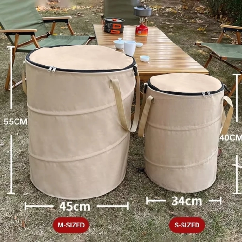 Camping Trash Can Pop-up Circular Storage Pail Canvas Foldable Recycling Bin Outdoor Garbage Garden Yard Garbage Bag