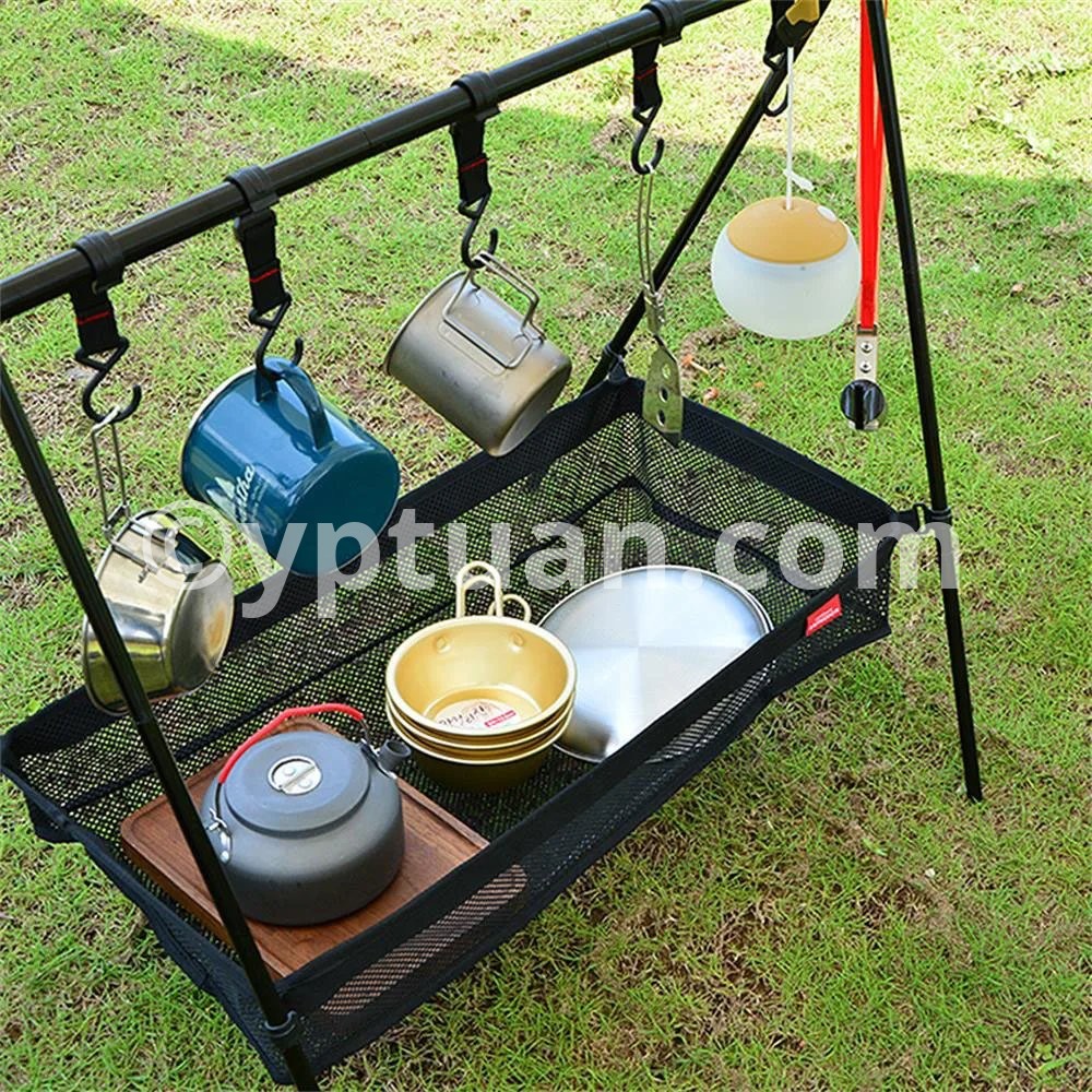 Picnic Under Table Storage Bag Desk Storage Box Tripod Mesh Basket Organizer Camping Table Tripod Rack for Picnic Camping