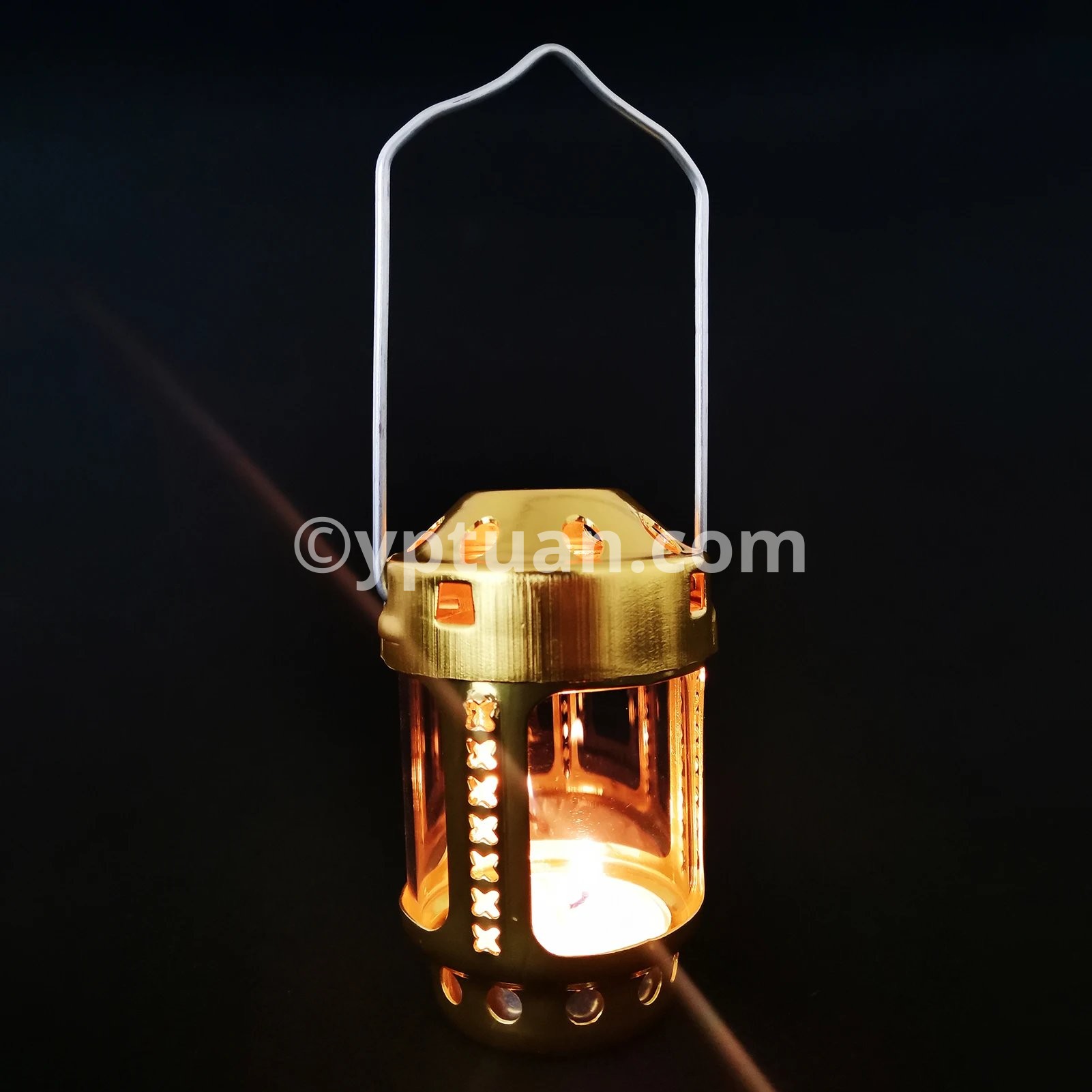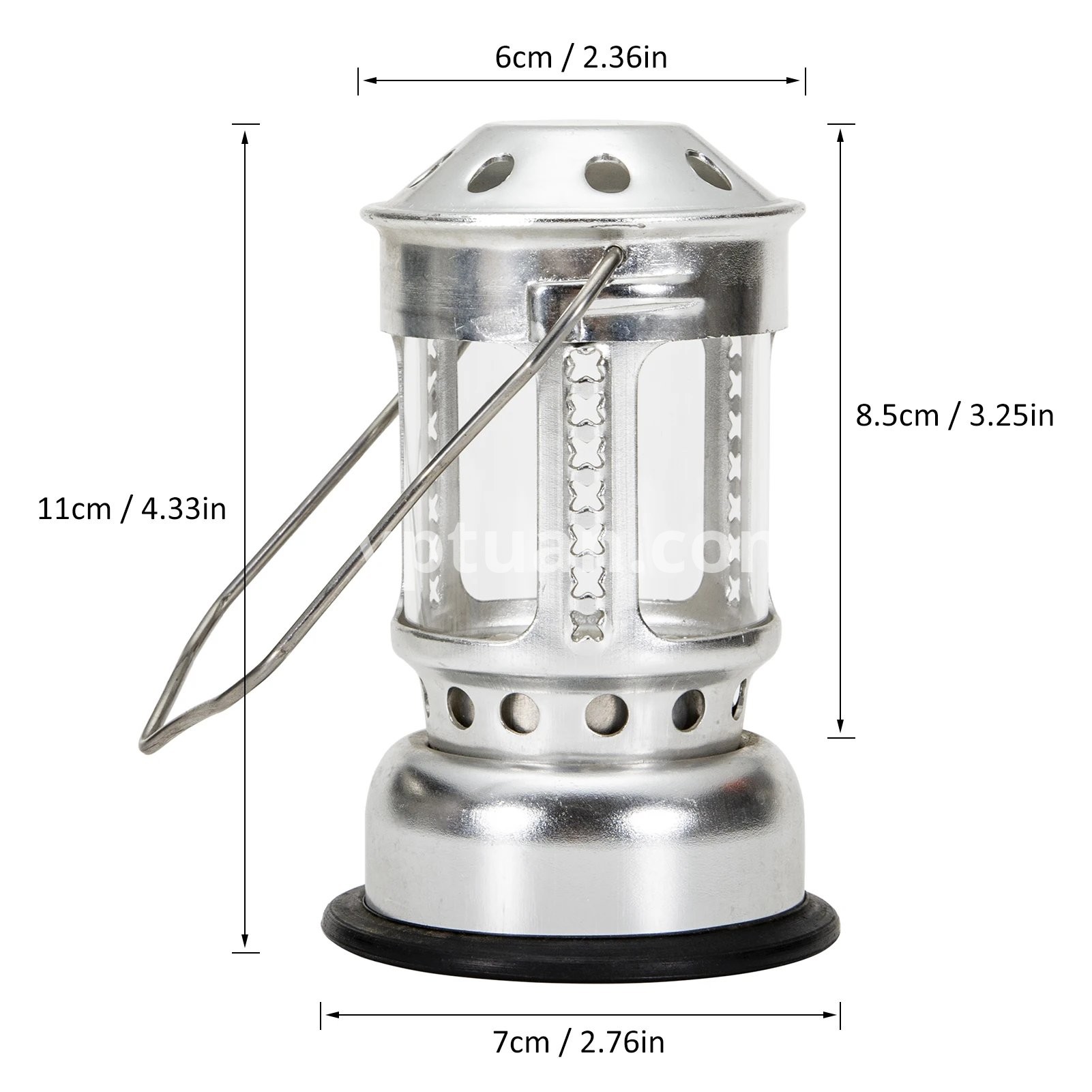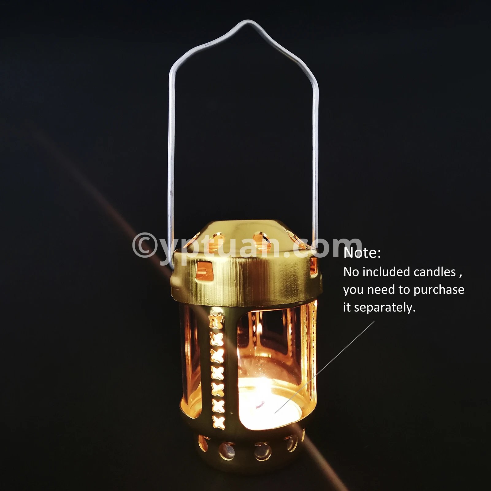 This portable aluminum alloy candle lantern is perfect for outdoor activities such as night fishing and camping. The brass hanging candlestick design adds a touch of elegance, while the tea light lamp provides a warm and cozy atmosphere.