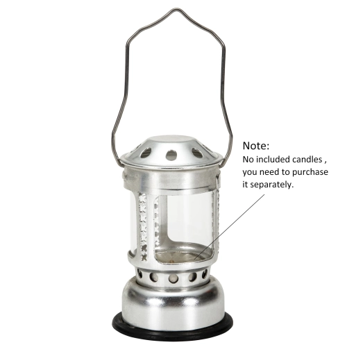 Emergency lantern candle holder features a heatproof base and glass shield; Carry handle, hanging hook and heat shield ensure safe hanging or transport.