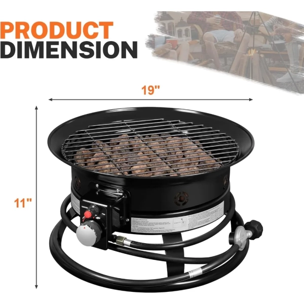 About this item [Create Perfect Gathering Ambiance]:GUNJI 19-inch Round Propane Fire Pit Table - Instant Smokeless Flame for Outdoor Entertainment, Ideal for Patio Warming, Backyard BBQ, and Camping Parties with Family & Friends [Zero Smoke Campfire Pro]:GUNJI Portable Propane Fire Pit - Hassle-Free Outdoor Heating Solution for Clean Camping, RV Trips, and Backyard Gatherings Without Smoke, Ash, or Expensive Firewood! [Smart Safety & One-Touch Ambiance]:GUNJI Propane Fire Pit with Automatic Ignition - Instantly Create Perfect Flames with Single Button Control for Ultimate Convenience and Safety! [Premium Outdoor Companion]:Crafted with Heavy-Duty Steel & Leak-Proof Engineering - Your Durable, All-Weather Fire Pit for Generations of Memories!