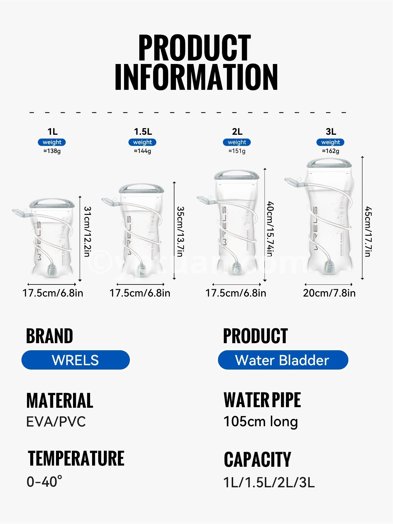 WRELS Hydration Pack Leak Proof Water Reservoir BPA Free Water Bladder Storage Bag Hiking 1L 1.5L 2L 3L Running Reservoir Bag