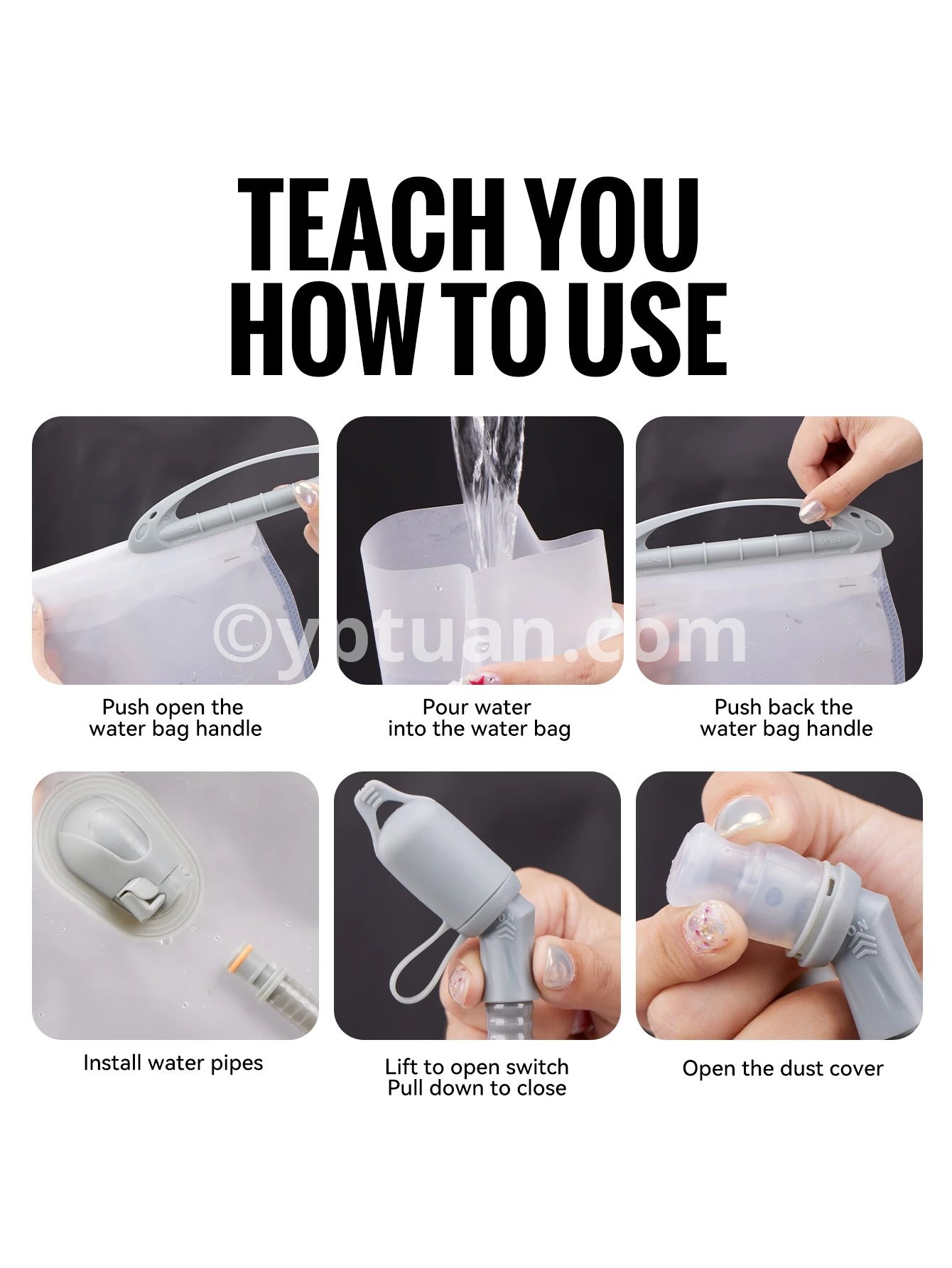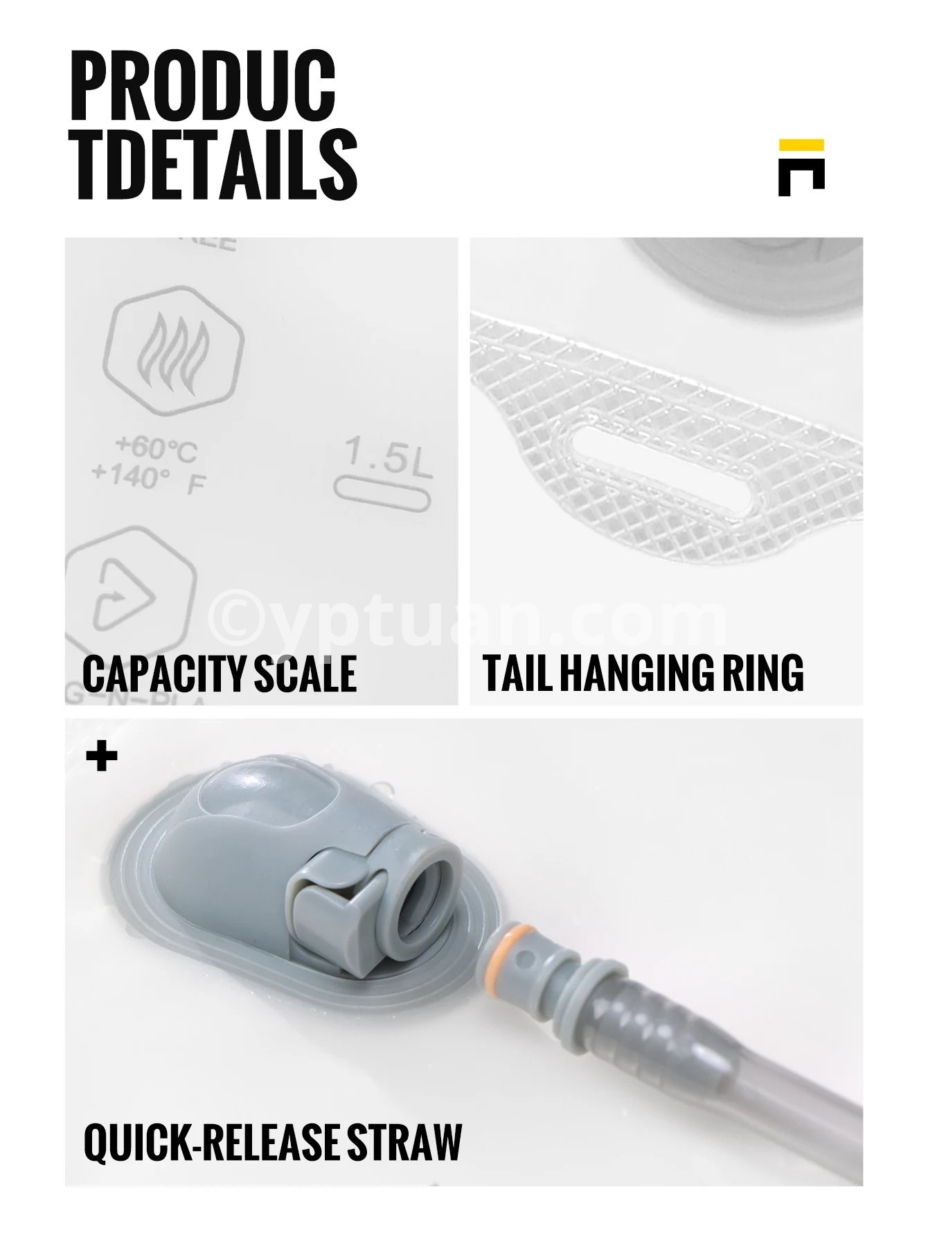 Durable Hydration Bladder for Hiking & Outdoor Use – Built with BPA-free, taste-free TPU material, this water reservoir for hiking backpack is rugged, leakproof, and resistant to wear and tear. 1L/1.5L/2L/3L Capacity Options for All Activities – Choose the 2L water bladder for short hikes or running, or the 3L hydration bladder for long-distance adventures and endurance sports. High-Flow Bite Valve & Quick-Connect Hose – This hydration bladder features a self-sealing bite valve for fast, effortless drinking, plus a quick-connect system for easy detachment and cleaning. Wide Opening for Easy Cleaning & Fresh Water – The large-mouth opening makes it simple to rinse, refill, and dry thoroughly, keeping your hydration bladder fresh and ready for your next adventure. Insulated Hose to Maintain Water Temperature – The water reservoir hose insulator keeps your water cool in hot weather and prevents freezing in cold conditions, ideal for hiking, cycling, and trail running.