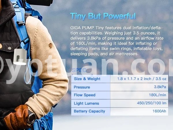 Aerogogo GIGA PUMP TINY: 3-in-1 Mini Pump Portable Inflator for Camping Sleeping Pad Mattress Lightweight for Easy Use