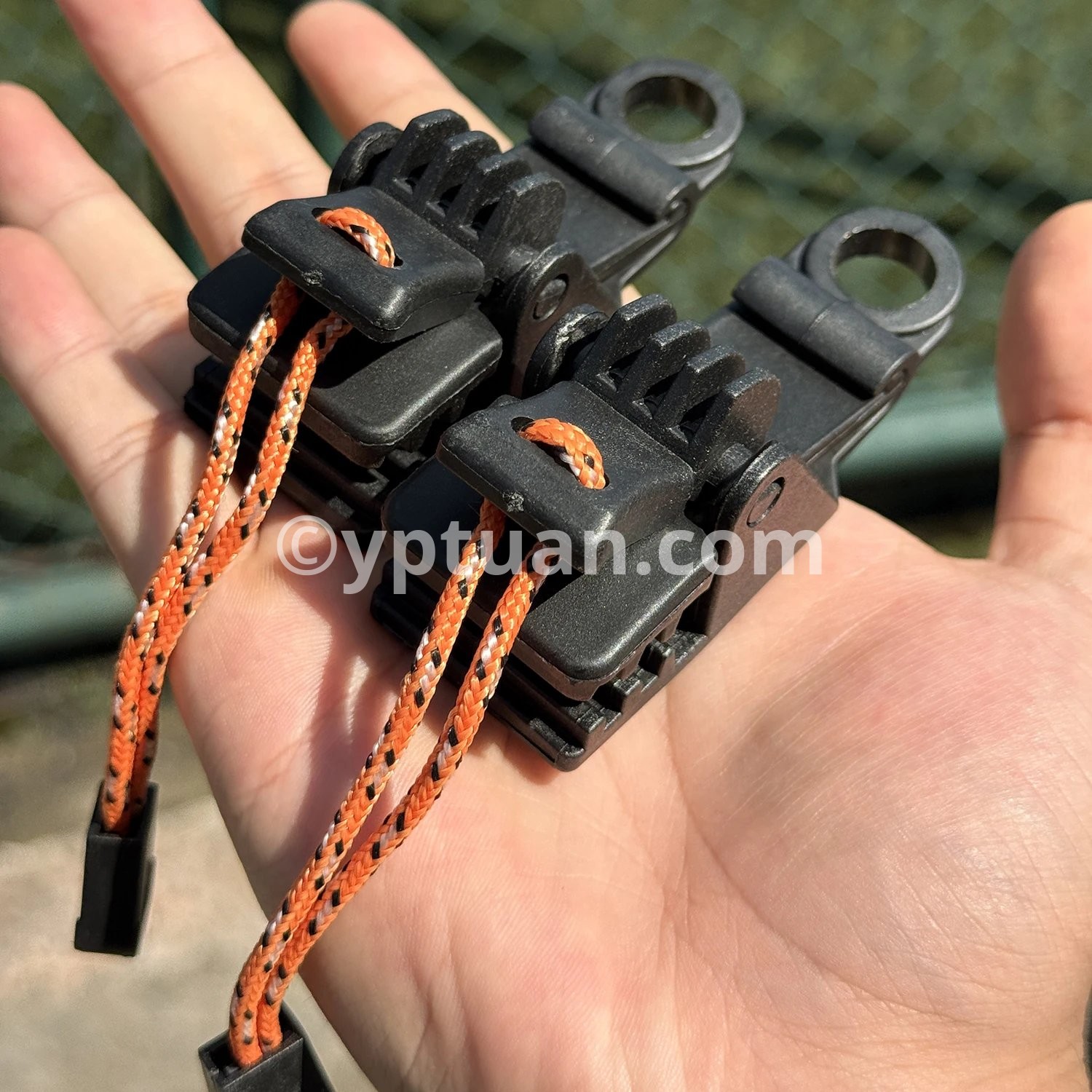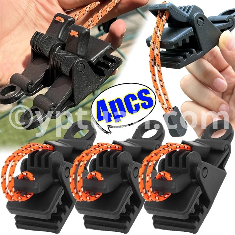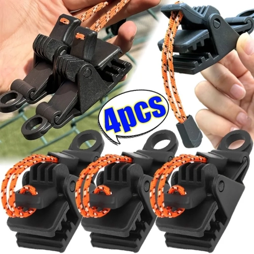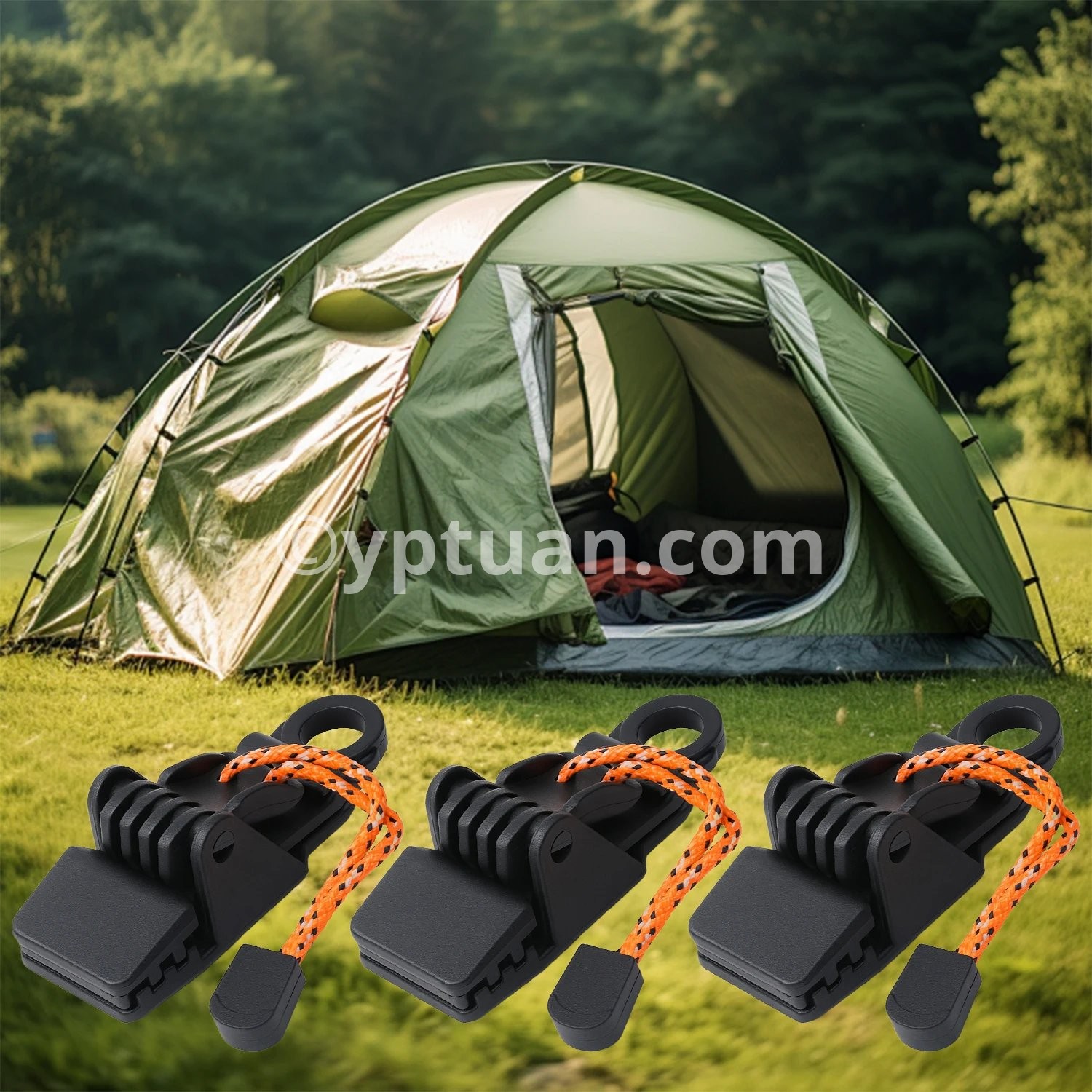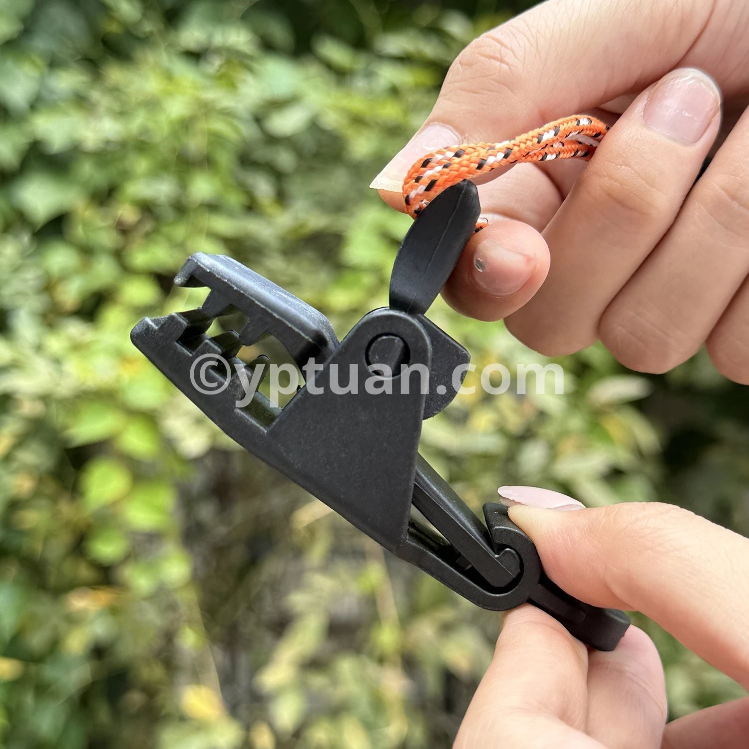 Specifications: 1. Material: Nylon 2. Color: Black 3. Size: Single size 8.6*3.6*3.2cm 4. Applicable: tents, awnings, tarpaulins, canvas, etc. 5. Package includes: 1/2/4*tent heavy-duty fixing clip