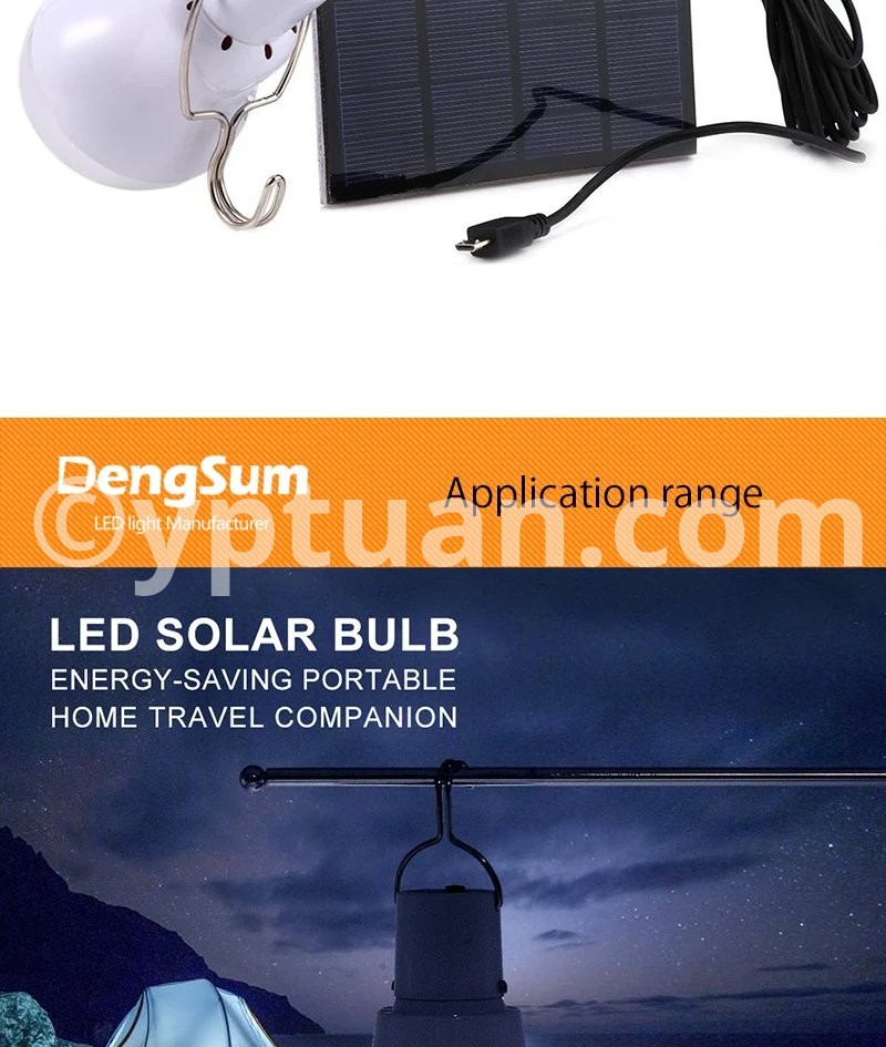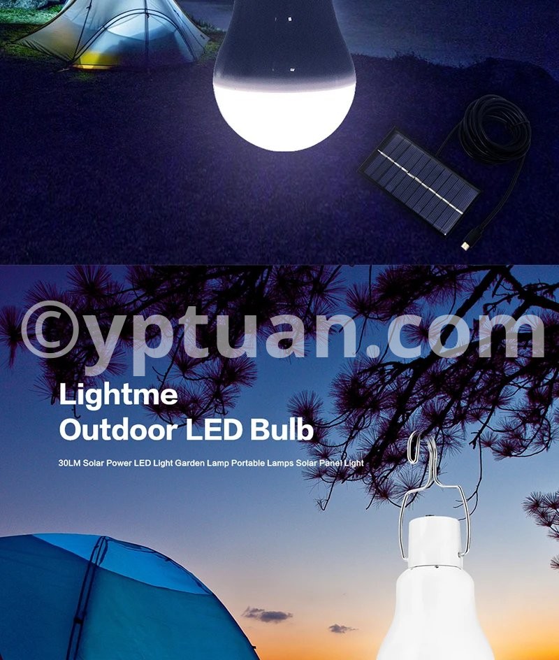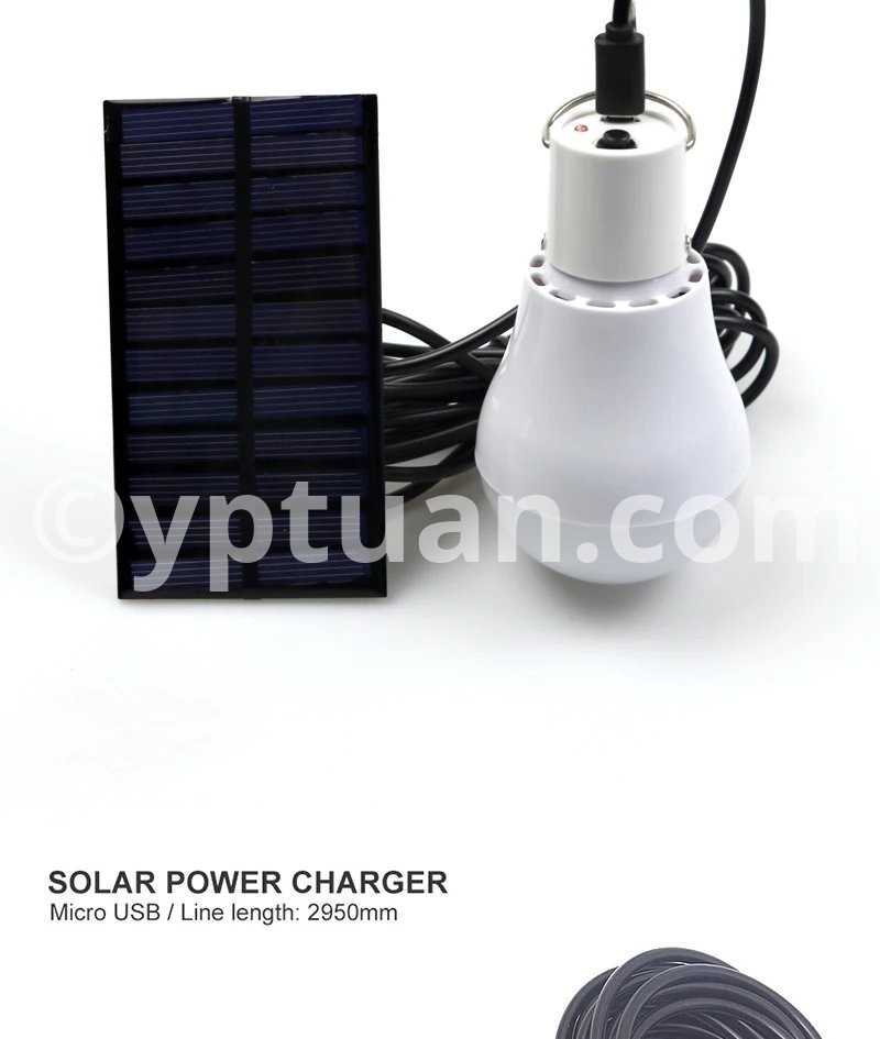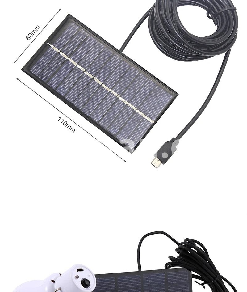 Package Contents: 1 x Chargeable Bulb, 1 x 0.8w/5v Solar Panel, 1 x 3.5Meter Connecting Line