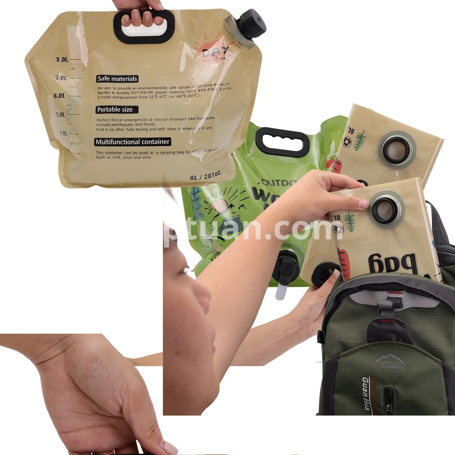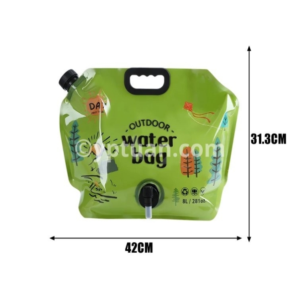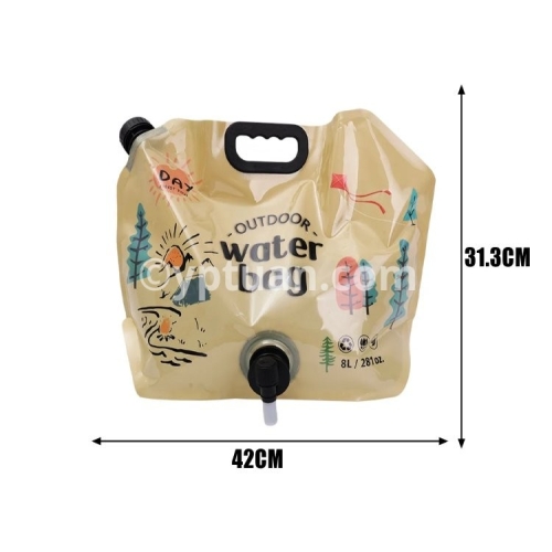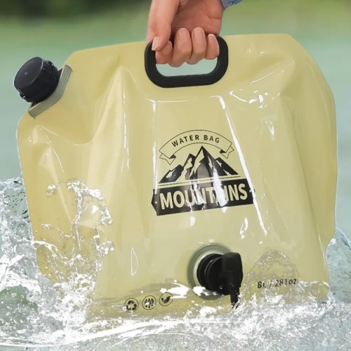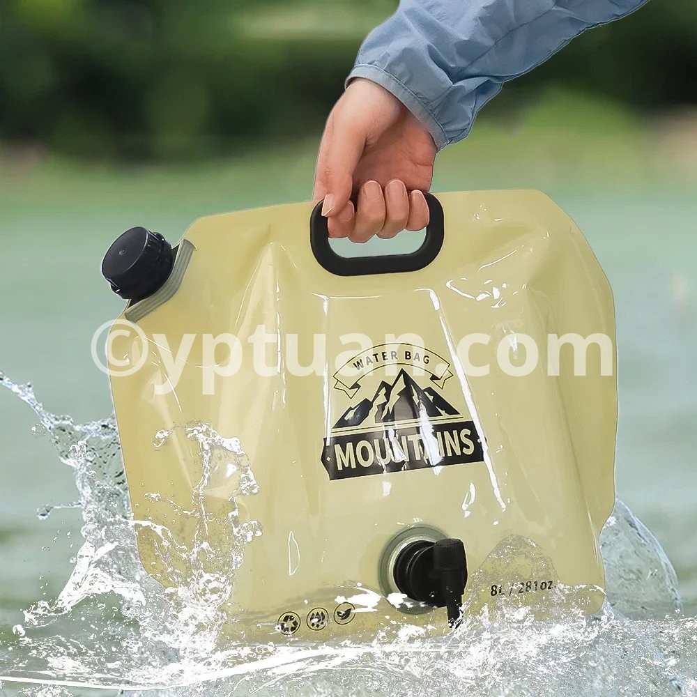 Specifications: A: Material: PET/PA/PE Size : 42*31.3cm B: Material: Plastic Color: Green, Khaki Size: Unfolded 42*7.5*31cm Packing size: 31*5*5cm C: Material: PVC size: 5L approximately 32.5*30.5cm 10L approximately 40.5*38cm Applicable: Outdoor camping and picnic scenes Package includes: 1* water storage bag